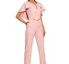 Tento overal z jednoho kusu s efektem pláštěnky na zádech a řetízkem vpředu určitě upoutá pozornost. Naše modelka měří 171 cm a nosí velikost S.