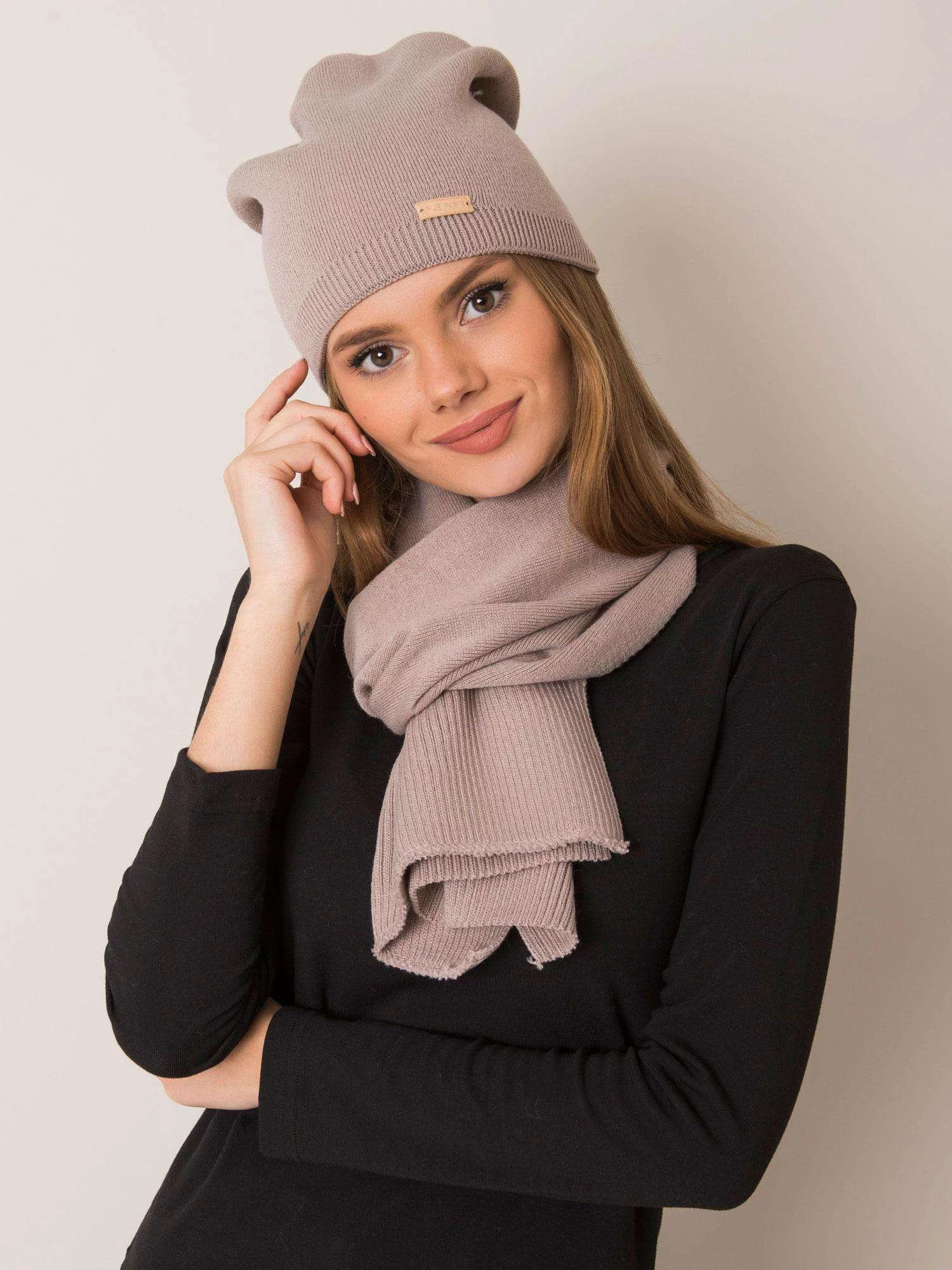 Produkt Dámský set čepice a šála KMPL-1 - RUE PARIS prodáváme v těchto velikostech: one sizea barvách béžová