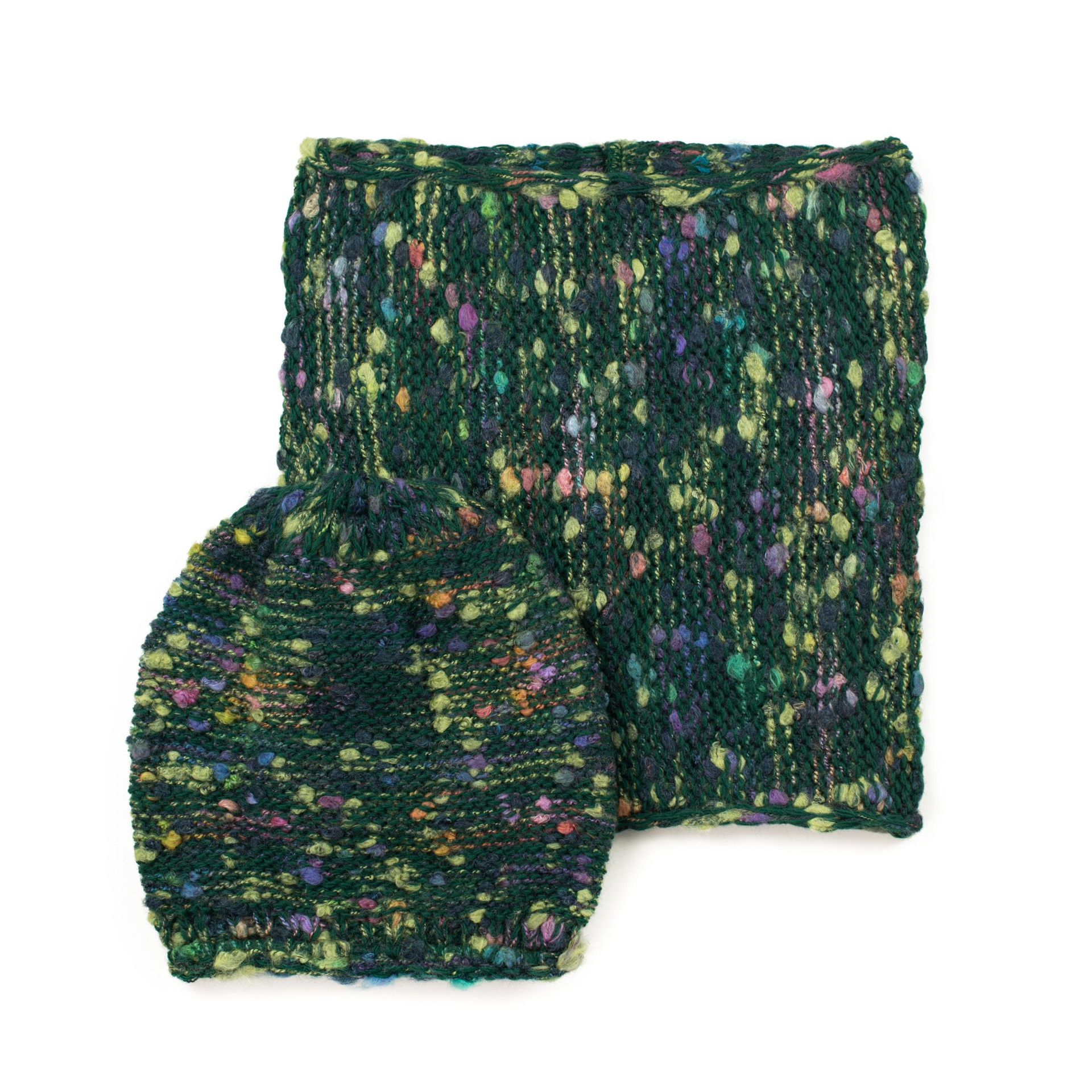 Zimní sada Melange. Sada klobouku a čepice Klobouk pěkně sedí na hlavě. Teplá šňůrka objímá krk. Vyrobeno v Polsku.