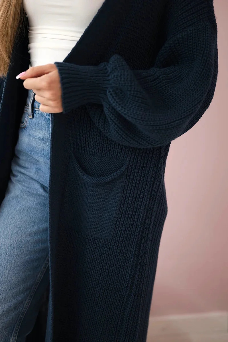 Produkt Dámský svetr dlouhý kardigan IT-8 Tmavě modrá - K-Fashion prodáváme v těchto velikostech: unia barvách tmavě modrá