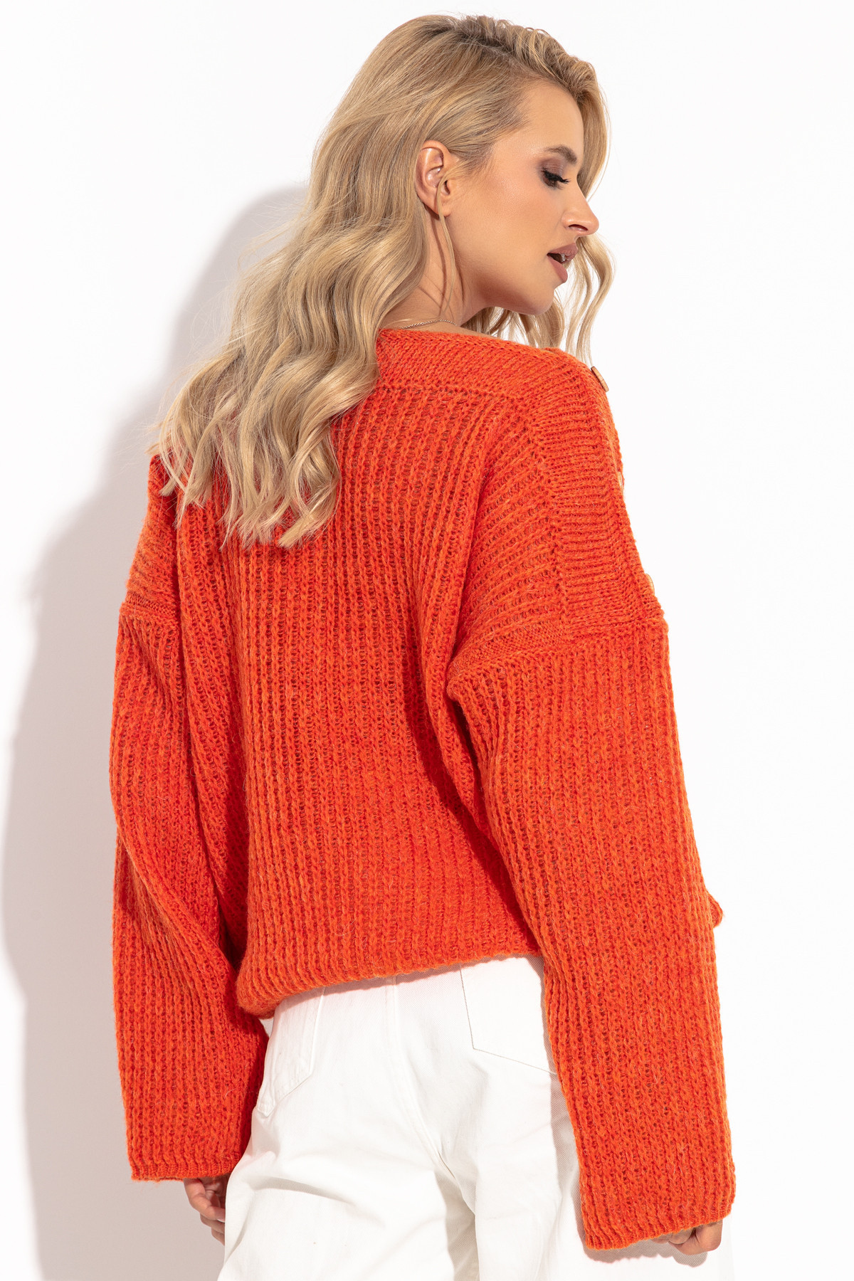 Pokud si vyberete klasiku v podzimních stylizacích, jistě si oblíbíte jemný, na dotek příjemný, měkký svetr s pohodlným, volným střihem. Jemná ecru, karamelová a černá barva, nebo snad ohnivě oranžová? Který z nich si vyberete ve svém oblečení? Lodičkový výstřih, knoflíky na ramenou v odstínu přírodního dřeva dodávají klasickému svetru charakter. Vypadá perfektně v kombinaci s širšími kalhotami, ale také odvážněji přes saténové mini šaty.