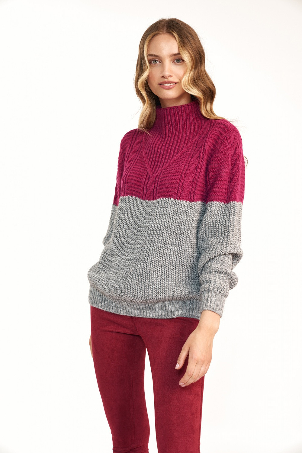 Produkt Dámský svetr model 159521 Fuchsie šedá - Nife prodáváme v těchto velikostech: unia barvách šedá-malinová