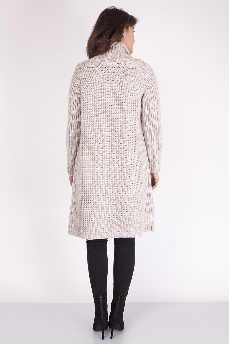 Pletený kabát se zajímavou strukturou a velkými kapsami. Je lehká, teplá a pohodlná a je ideálním společníkem na velké i malé výlety.