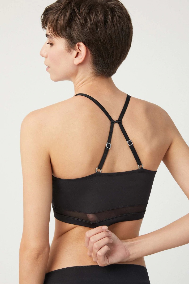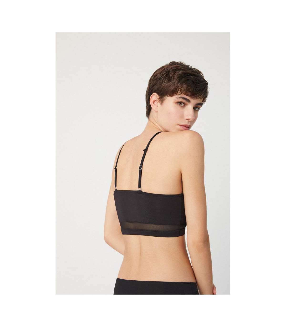 Dámský top na posouvací ramínka, spodní část topu s tylovu vsadkou.