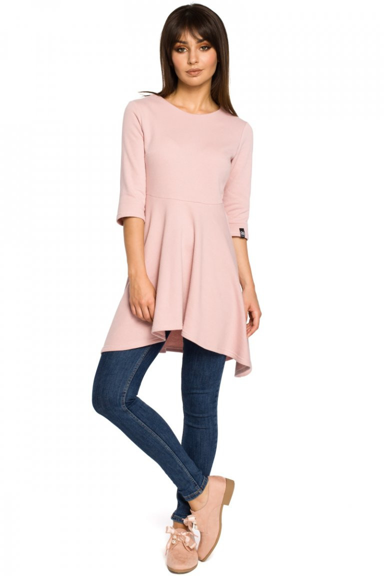Dámský elegantní peplum top asymetrického střihu - volánek vpředu kratší a vzadu delší, vysoký pas, rukávy k loktům.