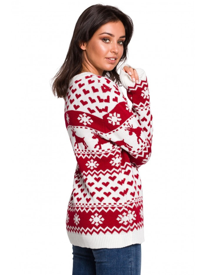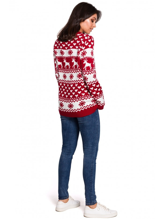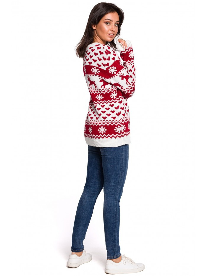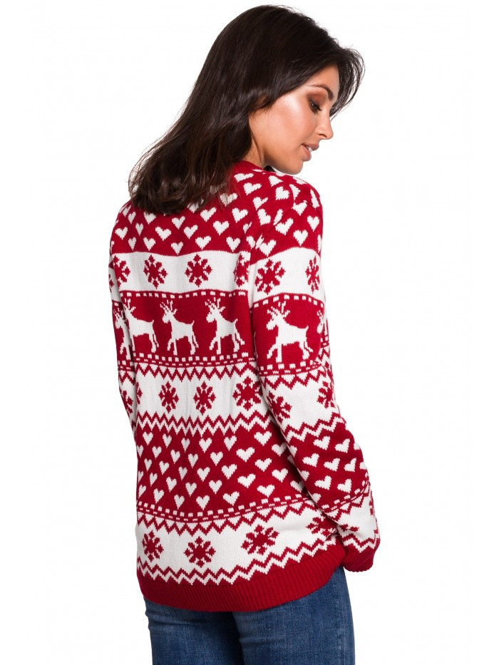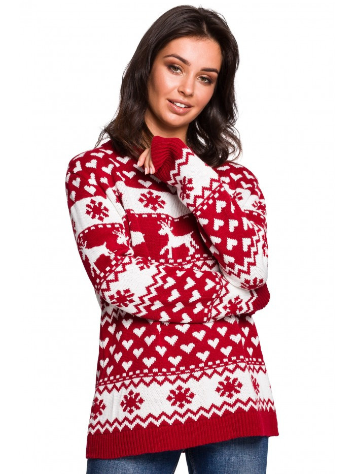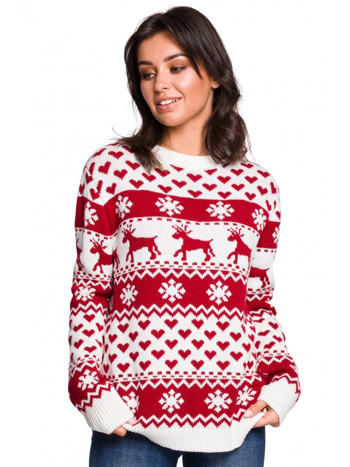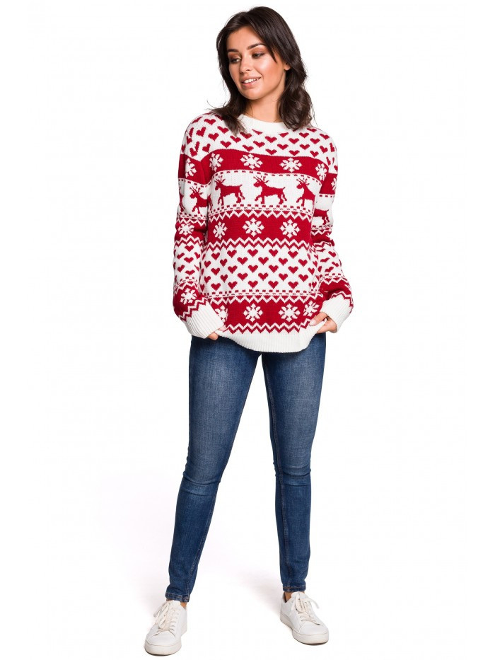 Produkt Dámský vánoční svetr BK039 - BEwear prodáváme v těchto velikostech: L/XLa barvách červená-bílá