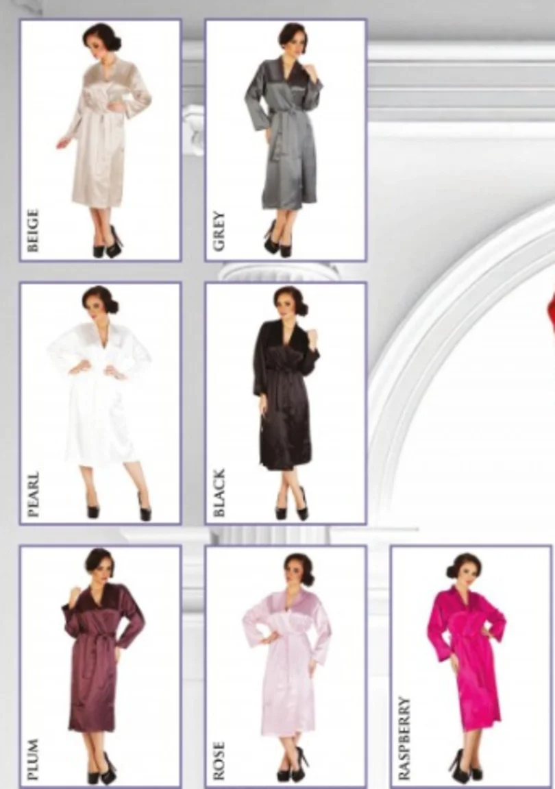 Elegantní dámský župan z jemného saténu. Dlouhé rukávy, pásek na zavazování. Materiál poskytuje měkkost na vnitřní straně a vysoký lesk na vnější straně. Celková délka měřená od ramenního švu je cca 115 cm. Župan je zabalen v elegantním dárkovém balení, může být ideálním dárkem pro někoho výjimečného.