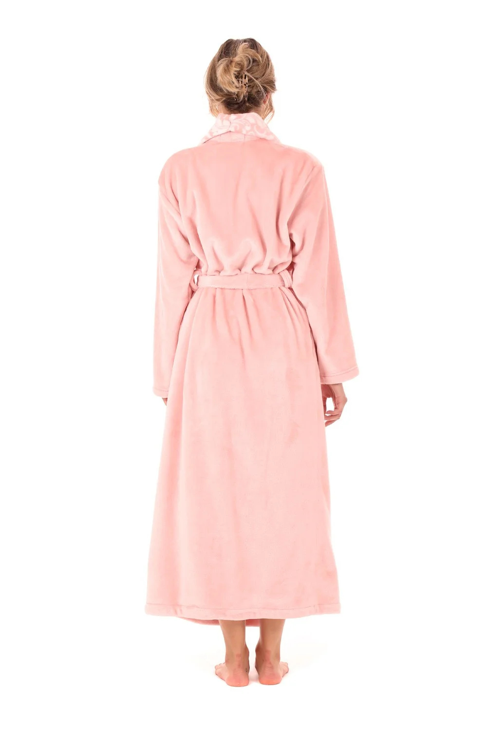 Svůdně a přitom pohodlně se budete cítit s županem Flora vyrobeným z luxusního materiálu flannel fleece s decentním květinovým vzorem, který kombinujeme s jendnobarevnou variantou pro dosažení moderní a zároveň nadčasové elegance. Tento župan je lehký, ale zároveň hřejivý, ideální pro chladnější rána a dlouhé večery. Střihová fazona se šálovým límcem, dvěma kapsami v bočních švech a páskem skvěle padne. Má klasickou délku, která poskytuje dostatečné pokrytí nohou při sezení a zároveň nepřekáží při chůzi. Materiál má velmi krátký vlas a díky tomu nemá velký objem a nebude vám přidávat nechtěné centimetry. Je sametově hebký a lesklý. Dopřejte si pocit výjimečnosti každý den.