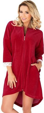 Dámský velurový župan Lilie. Župan je vyhotovený z hebkého savého veluru, který příjemně zahřeje. Je vybavený dvěma skrytými postranními kapsami. 3/4 rukávy jsou zakončené bílou květinovou krajkou. Zadní díl má uprostřed malý rozparek a je střižený oble.