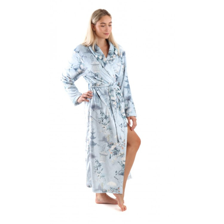 Miya, dámský hřejivý župan s motivem japonské zahrady délka: 125cm S, 130cm M, 135cm L, 140cm XL, 145cm XXL střih: župan s límcem, kapsy v bočním švu , pásek velikosti: S,M,L,XL,XXL Materiál: digitální tisk, flannel fleece, složení: 100% polyester mikrovlákno, barva: tisk japonská zahrada z řady Secr