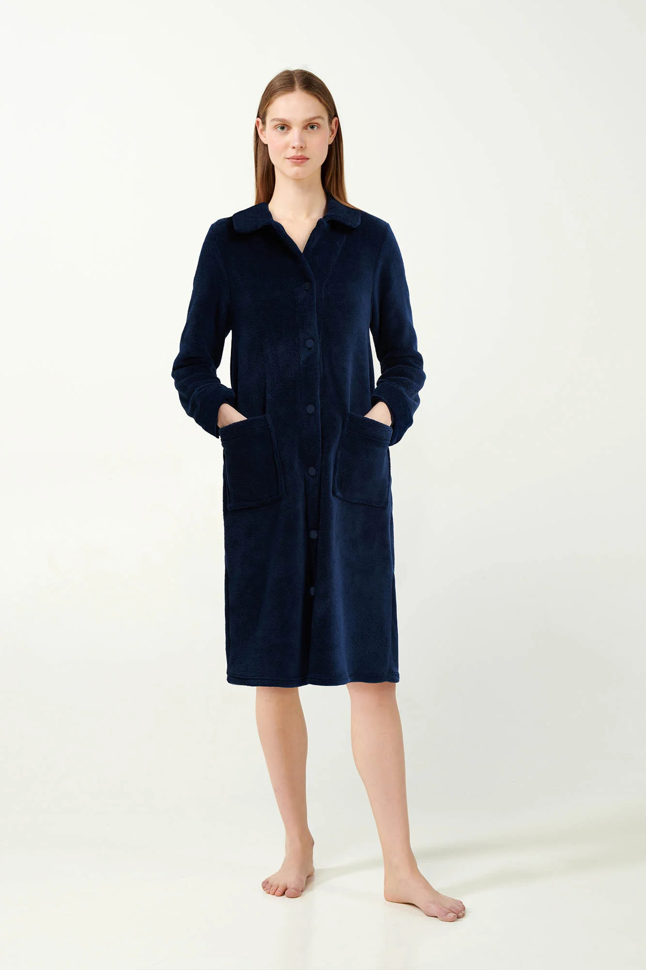 Produkt Dámský župan na knoflíky 21518 - Vamp prodáváme v těchto velikostech: XXLa barvách tmavě modrá