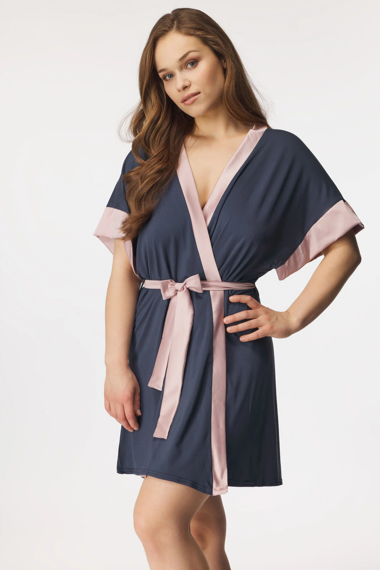 Dámský župánek Natalie Babella - vyrobený z vysokého podílu viskózy - hladký a příjemný při nošení - rukávy lehce sahají pod ramena a jsou ukončeny širší saténovou stuhou - délka je pod zadek a v pase je saténový pásek na zavazování - zupánek je dodáván v dárkové krabičce