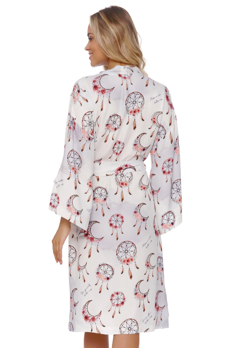 Bambusový župan s krásným vzorem uvázaný v pase. Ve stylu HOMEWEAR, ideální při relaxaci jako pohodlné domácí oblečení, na pláž, na letní večery, vyrobené z bambusové viskózy nejvyšší kvality. Nádherný ženský střih s páskem v pase a jemnými rozparky na rukávech.