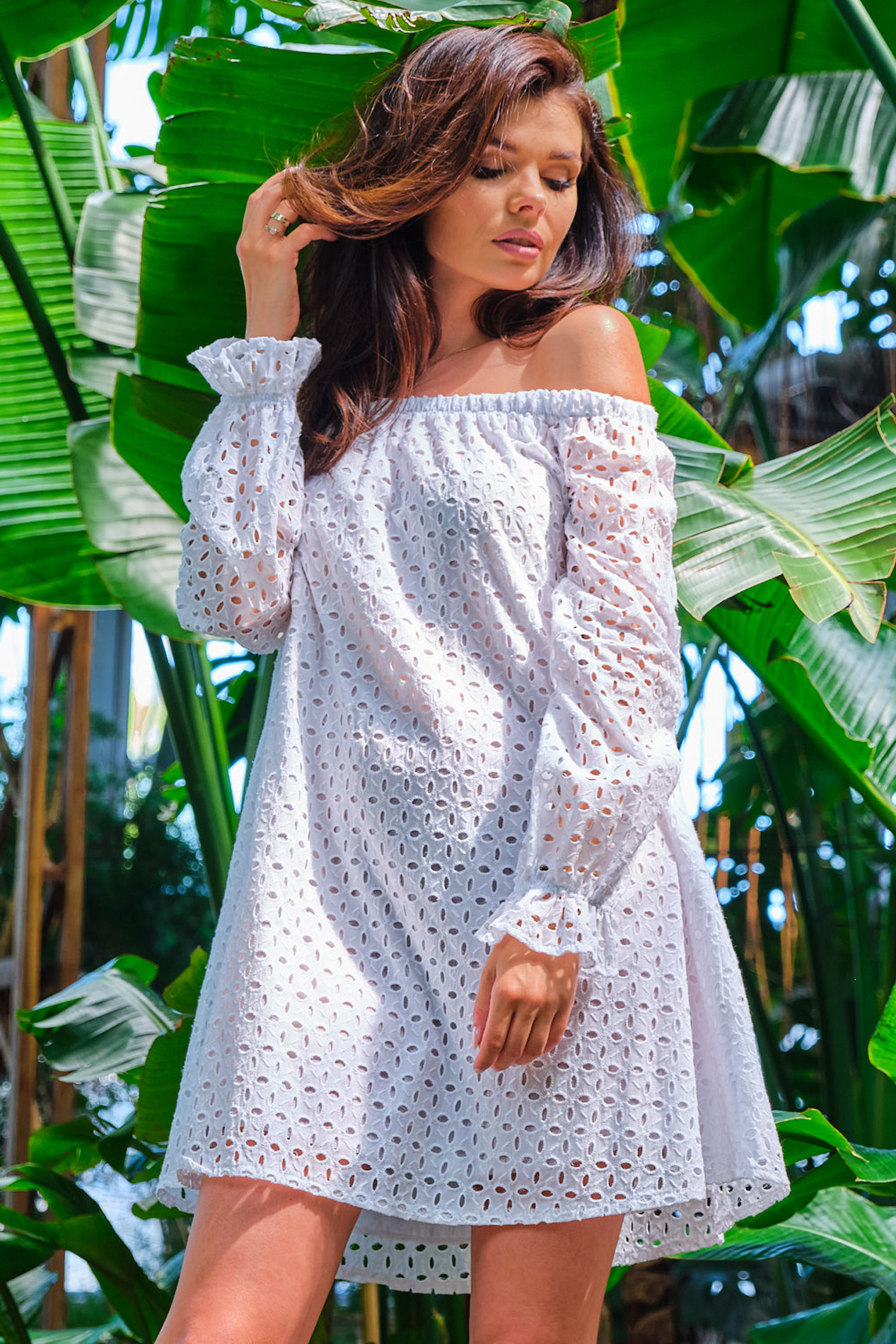 Produkt Denní šaty A435 Bílá - Awama prodáváme v těchto velikostech: S/Ma barvách bílá
