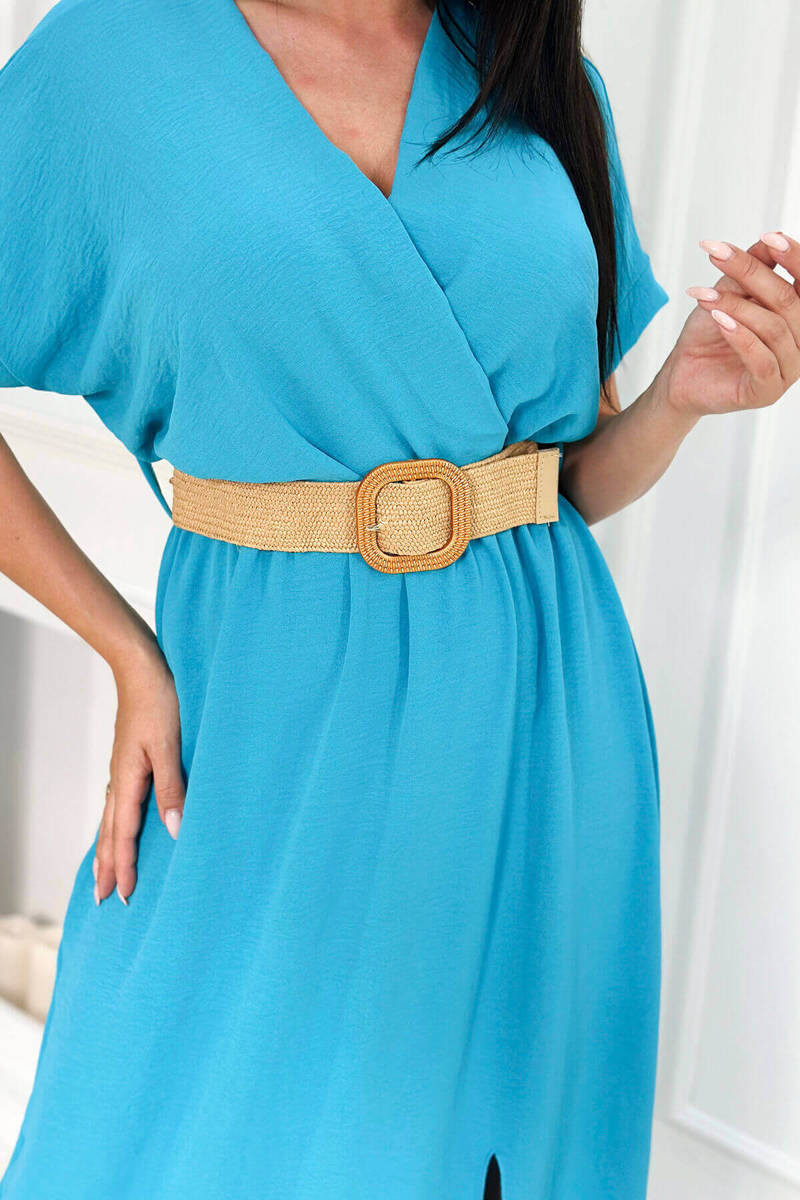 Představujeme vám pohodlné šaty s ozdobným páskem. Šaty mají ve spodní části rozparek. Šaty jsou vyrobeny z vysoce kvalitního materiálu. Velmi zajímavá nabídka pro všechny dámy. Velikost je univerzální a bude vhodná pro dámy, které nosí velikost S, M nebo L.
