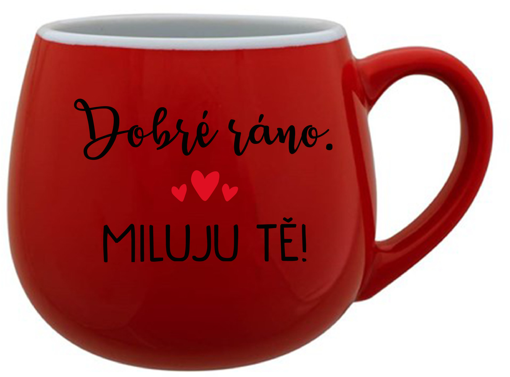 • DOBRÉ RÁNO. MILUJU TĚ! - červený keramický hrníček 300 ml
