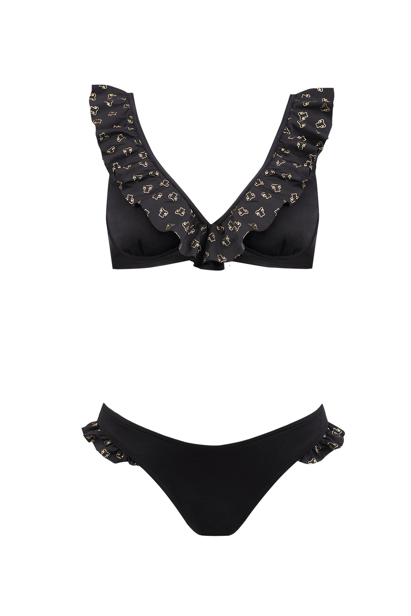 Vrchní díl s ozdobnými volánky a medvídkovým vzorem.