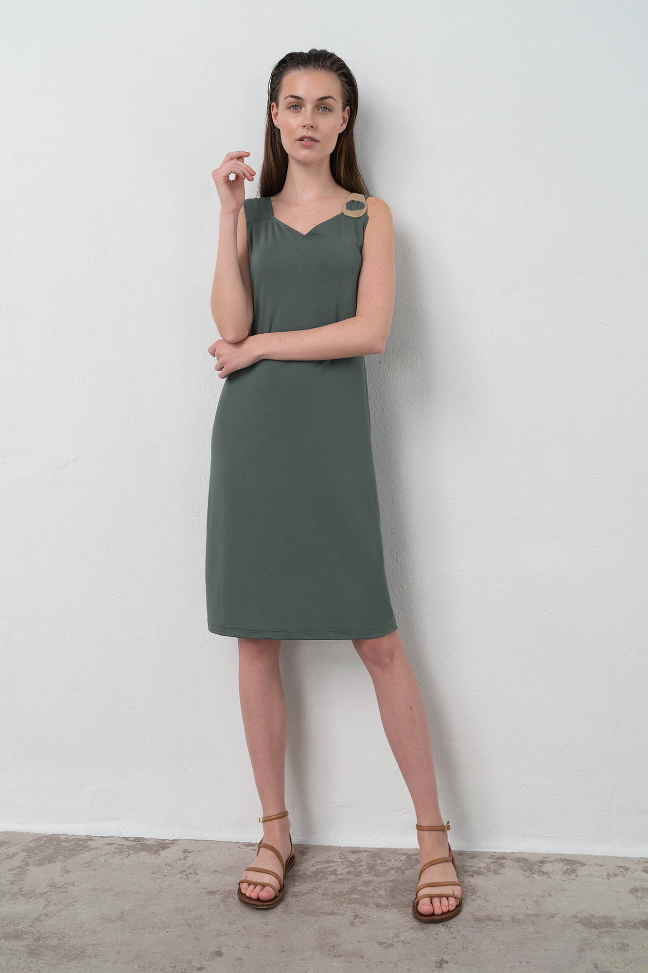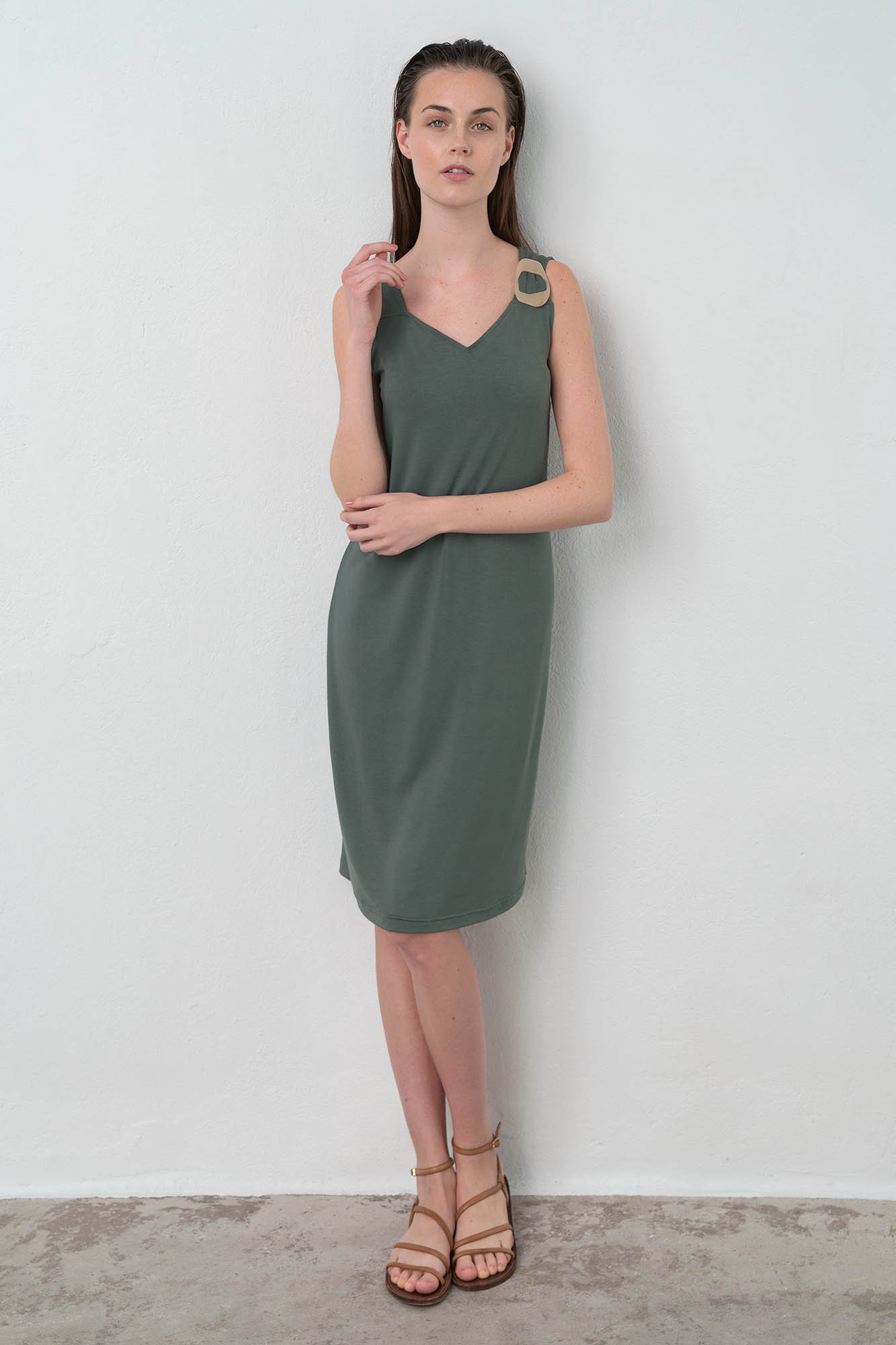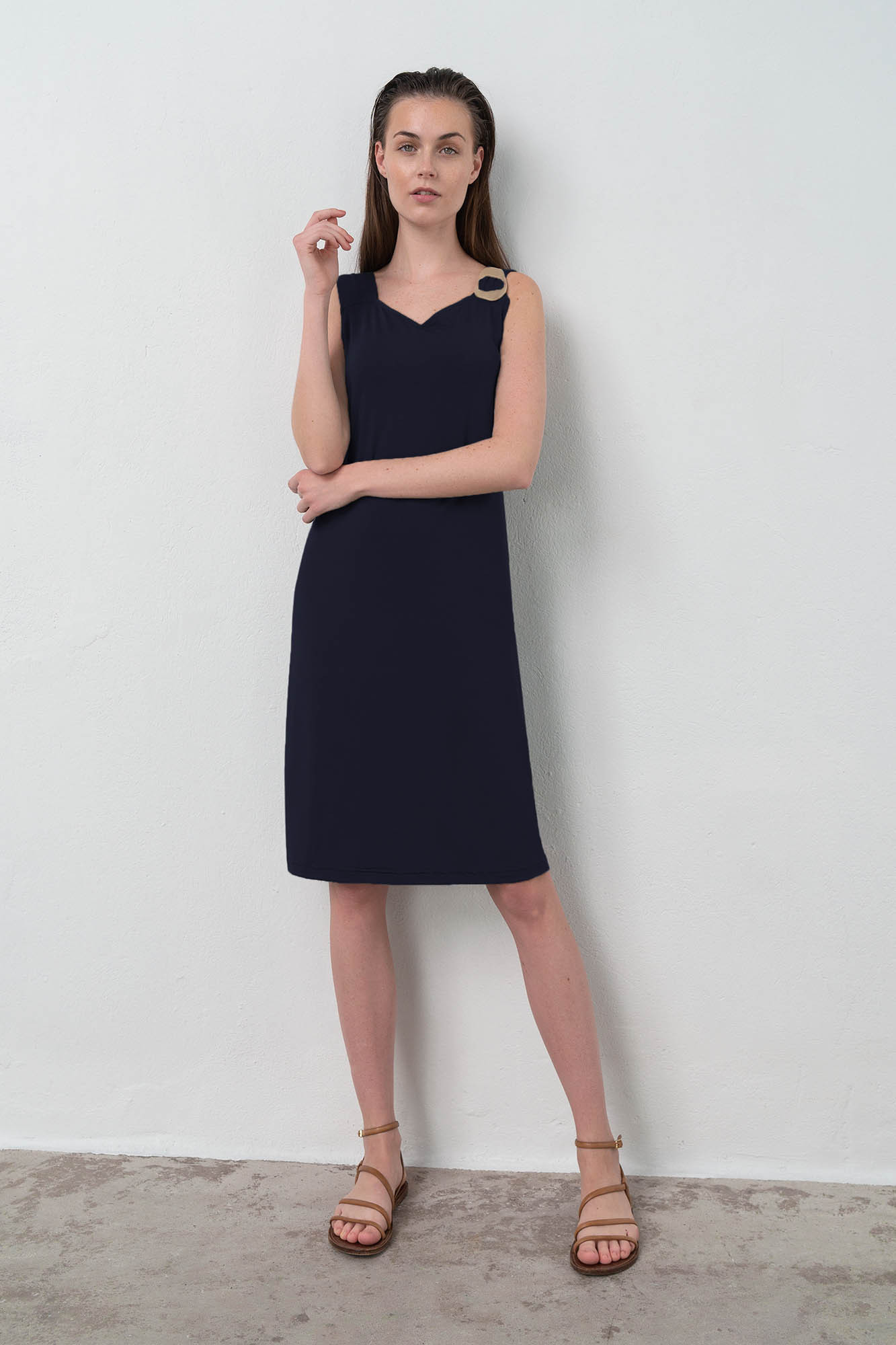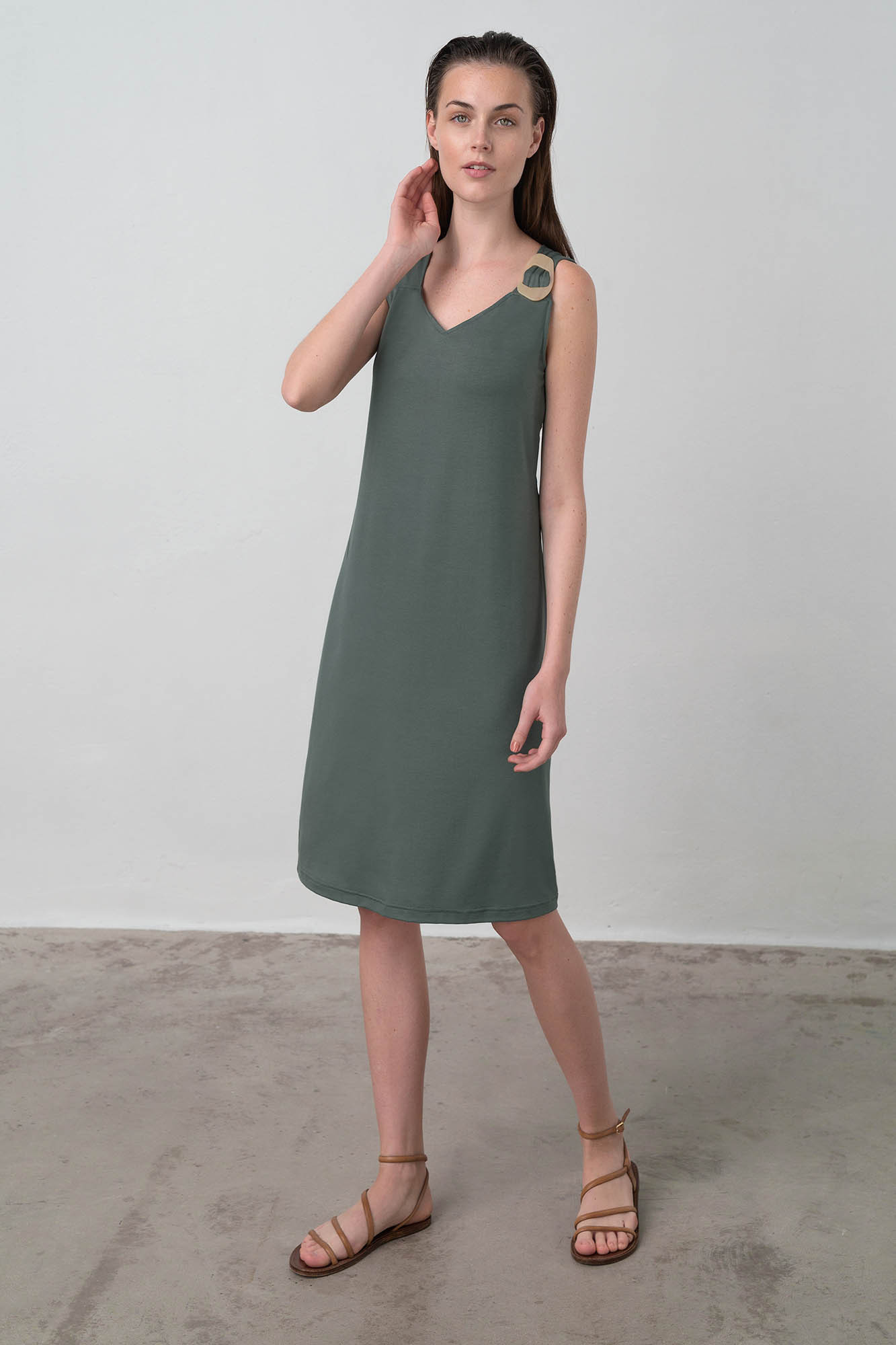 Elegantní dámské šaty na ramínka s výstřihem do V, vše co žena v parných letních dnech potřebuje. Šaty jsou vyrobené z kvalitní viskózy s příměsí elastanu. Viscoza se vyznačuje vysokou savostí, je dobře prodyšná, měkká a příjemná na dotek a elastan zaručuje lepší pružnost tkaniny.