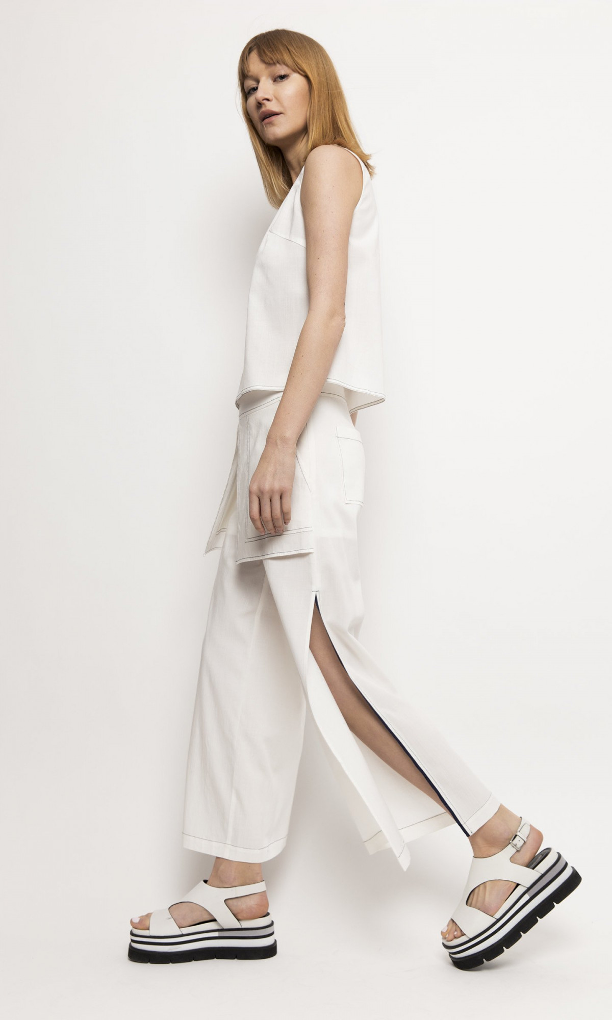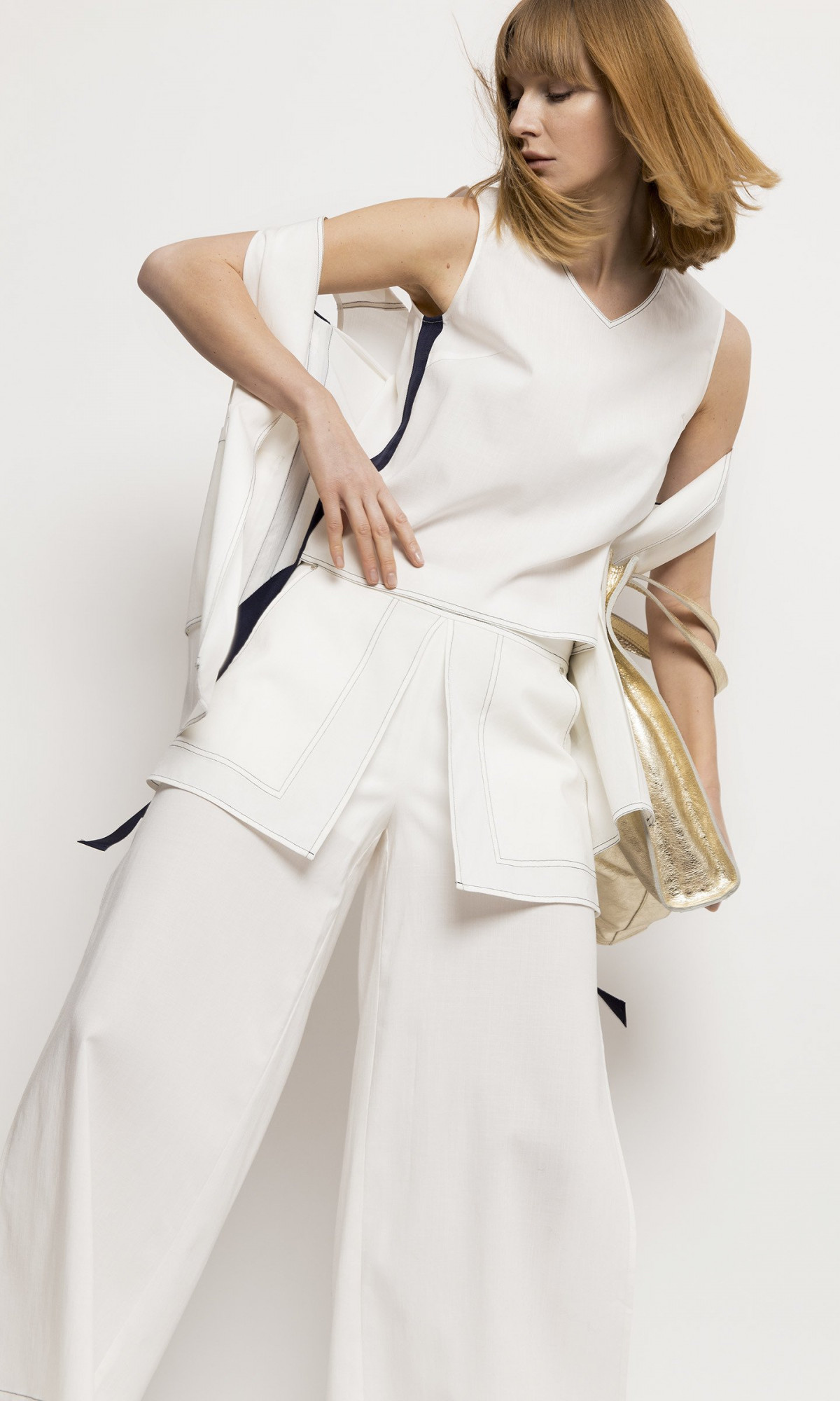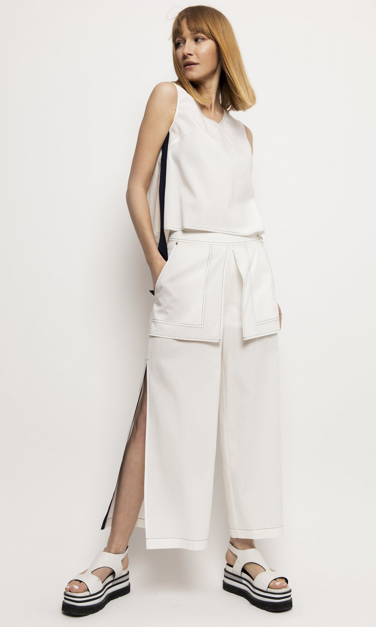Jednoduchý top s ozdobným kontrastním páskem na bočním švu.