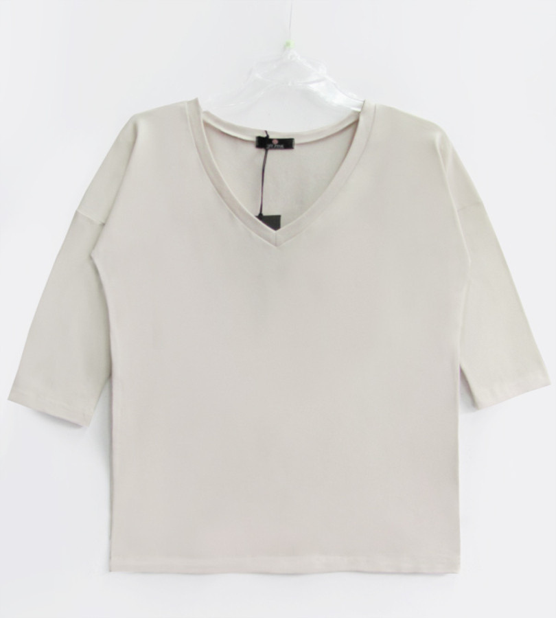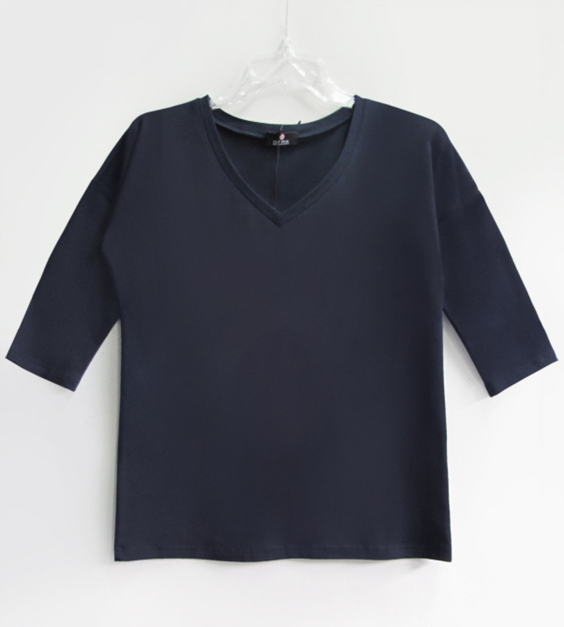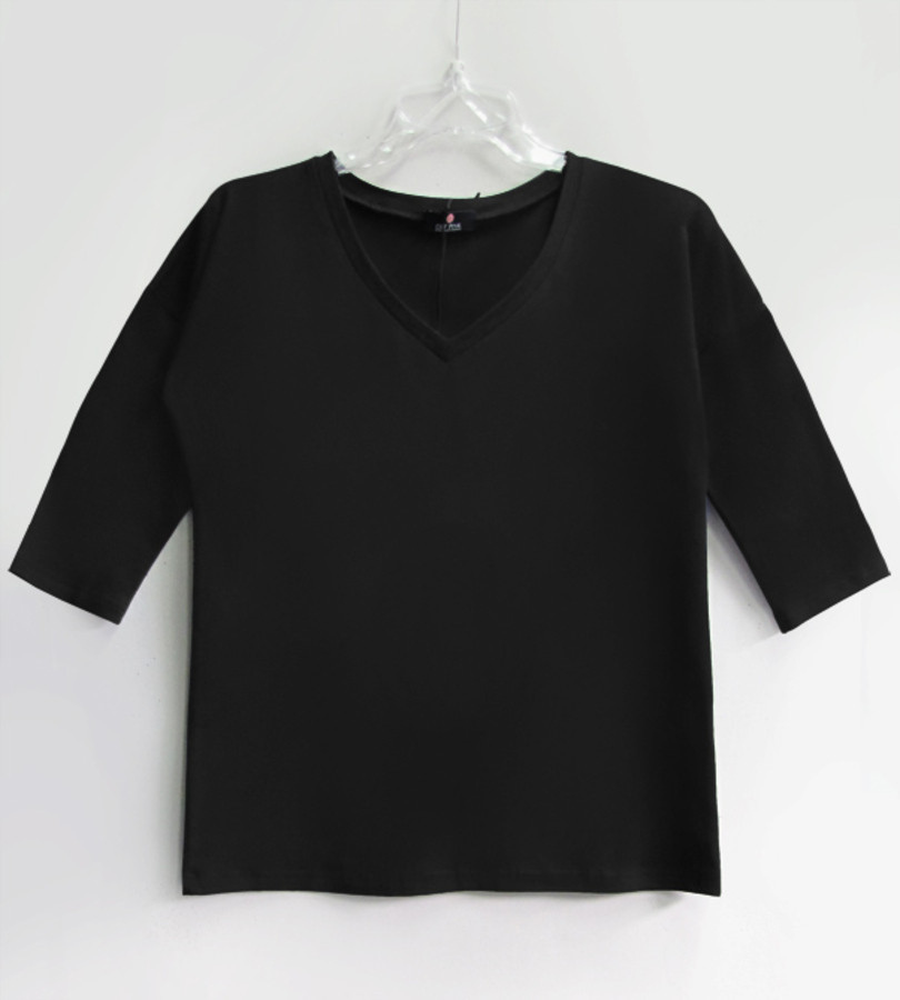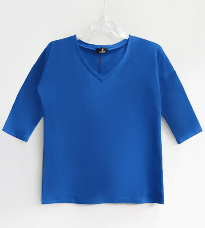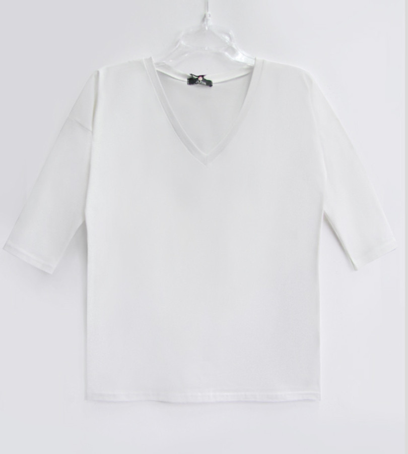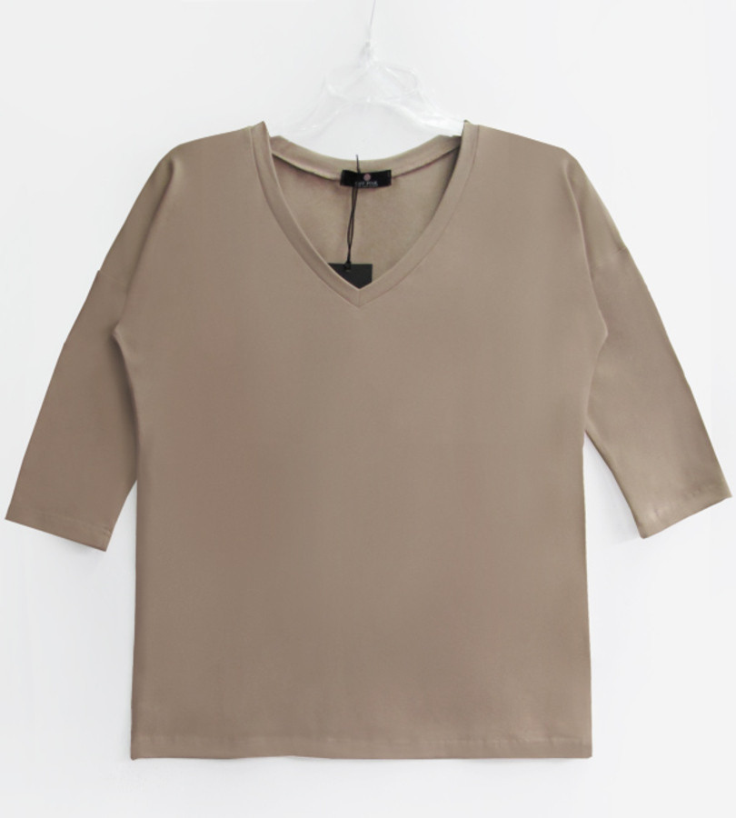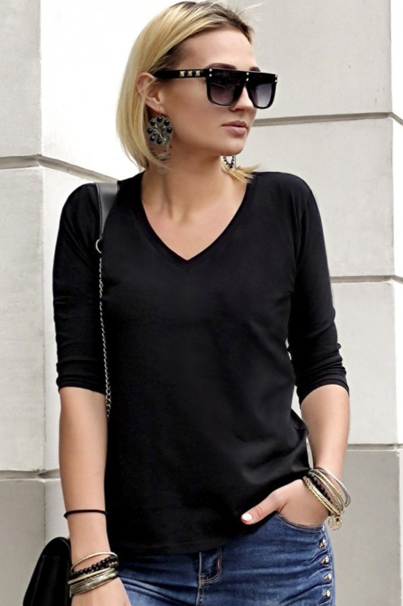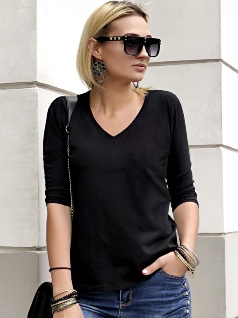Hladká dámská halenka s 3/4 rukávy a výstřihem ve tvaru písmene "V".