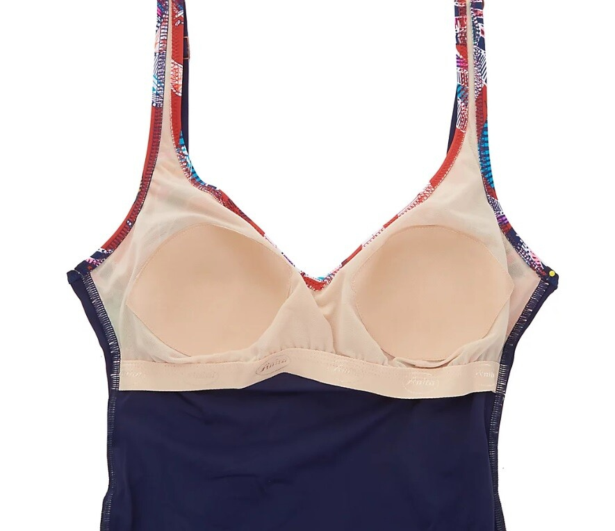 Dámské jednodílné luxusní plavky značky Anita. Posouvací hrubé ramínka. Všitá podprsenka s tenkými vložkami, podšitá gumou pro komfort při nošení. Vepředu rafinovaně prošívané u prsou.