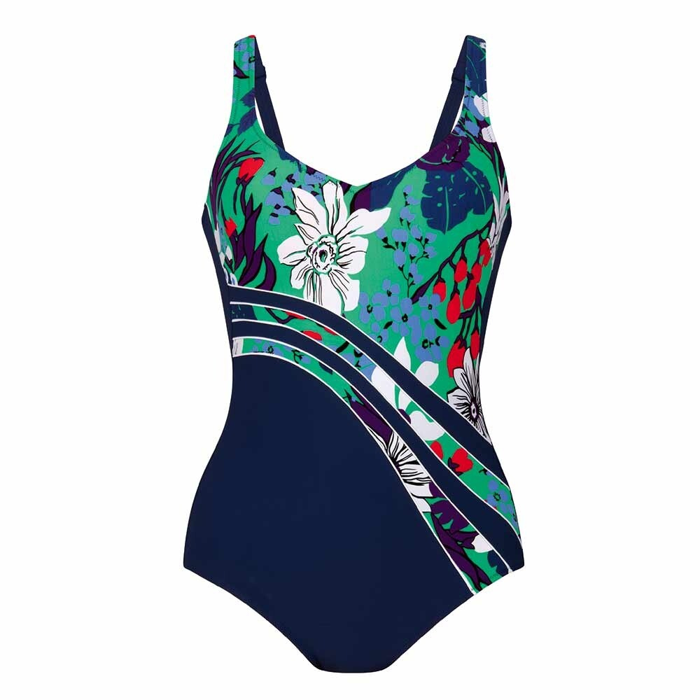 Jednodílné luxusní dámské plavky, s posouvacími ramínky. Přední díl celopodšitý. Košíčky se všitými tenkými vložkami, podšité gumou pro komfort při nošení.