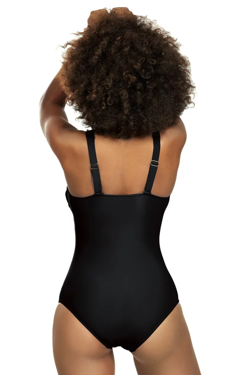 Plavky mají měkce podšité košíčky. Pod poprsím je speciální guma, která pěkně poprsí nadnáší. Přední díl modelu je střižený tak, aby zeštíhloval postavu. Také plný zadní díl postavu zeštíhluje. Délku ramínek je možné nastavit. Plavky jsou vyrobené z velmi kvalitního materiálu, který rychle usychá a který je odolný vůči působení chloru a slunečního záření. Model se ideálně přizpůsobuje postavě. Plavky jsou vhodné na bazén i na pláž.