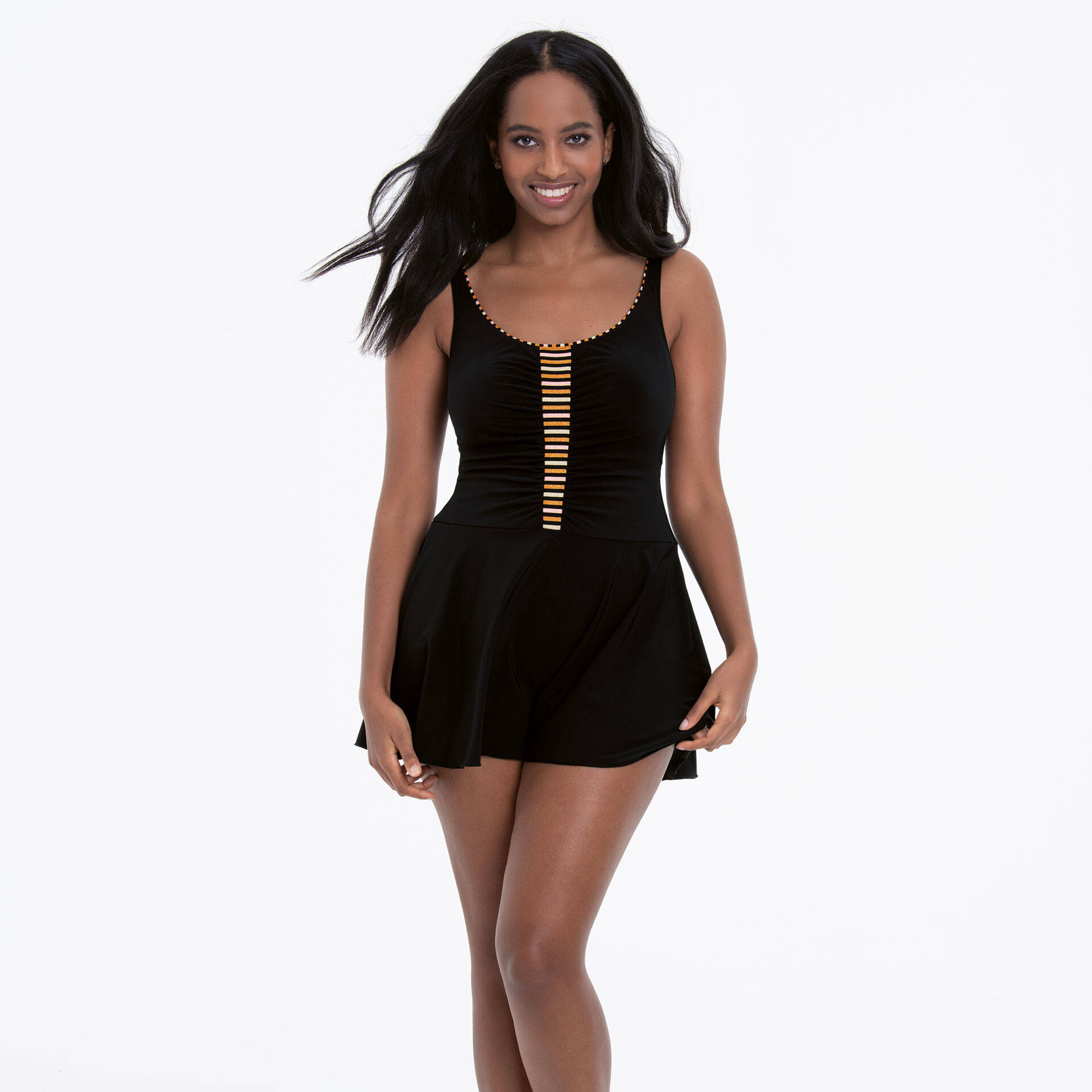 Jednodílné plavky se sukýnkou 7322 M3 černo-hnědé - Anita