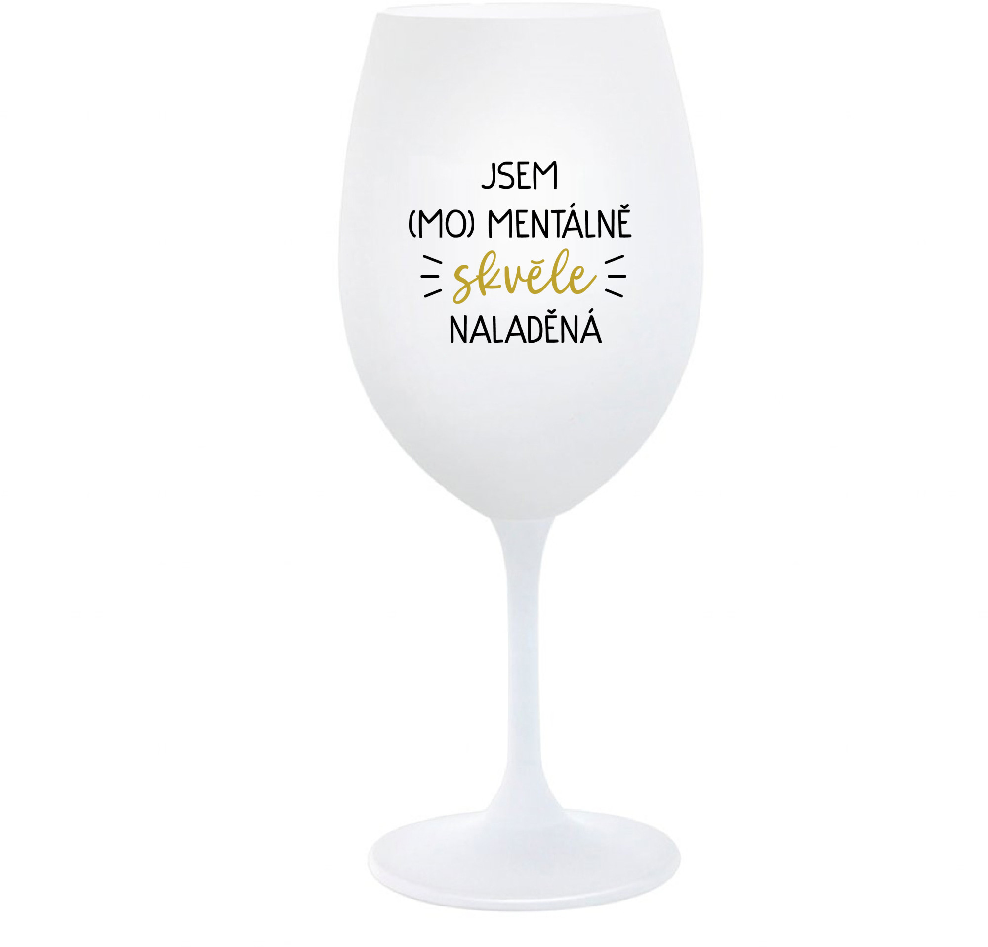 Vinná bílá sklenice s originálním motivem JSEM (MO)MENTÁLNĚ SKVĚLE NALADĚNÁ je krásným a osobitým dárkem, které ale využijete i Vy sami třeba ve chvílích, kdy si budete chtít zpříjemnit náročný den. Tyto originální vinné sklenice jsou totiž nejen pro výjimečné události, ale i pro běžné večery, které si chcete zpříjemnit sklenkou dobrého vína. Jistě proto potěší každého milovníka vína, i toho, kdo si umí svůj život vychutnat plnými doušky.