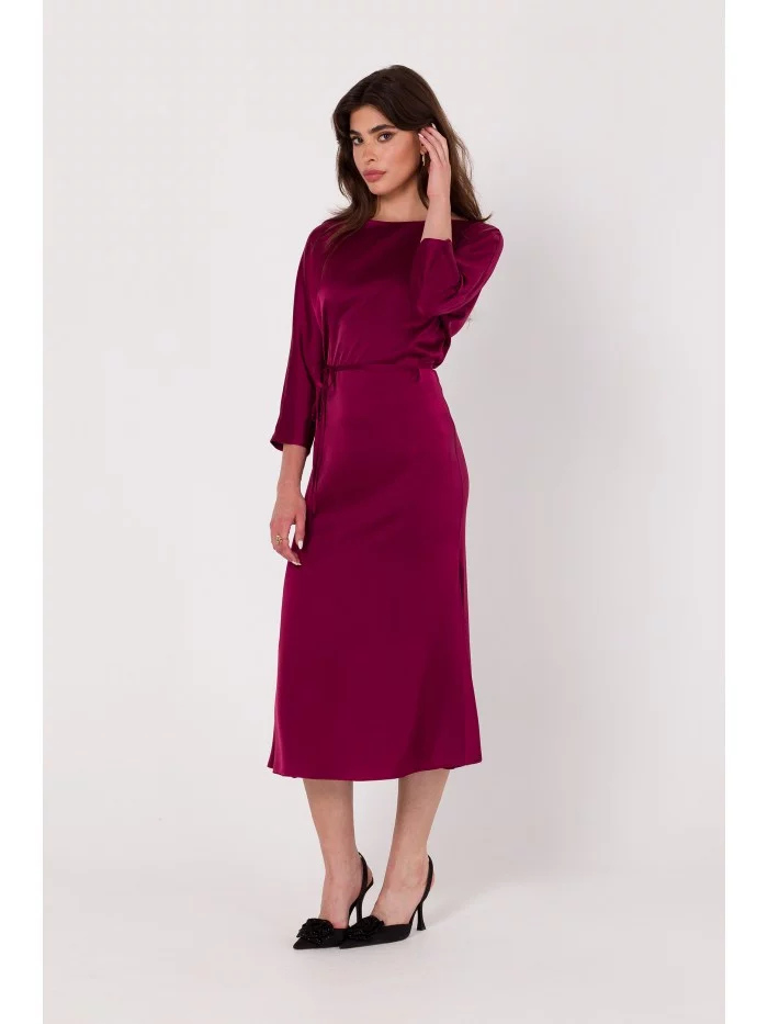 98 % polyester 2 % elastan DETAILY VÝROBKU: tkaný satén tříčtvrteční netopýří rukávy midi délka bateau výstřih tenký vázaný v pase skrytý zip na zádech bez podšívky Naše modelka je 168 cm vysoká a nosí velikost S Navrženo a vyrobeno v Polsku