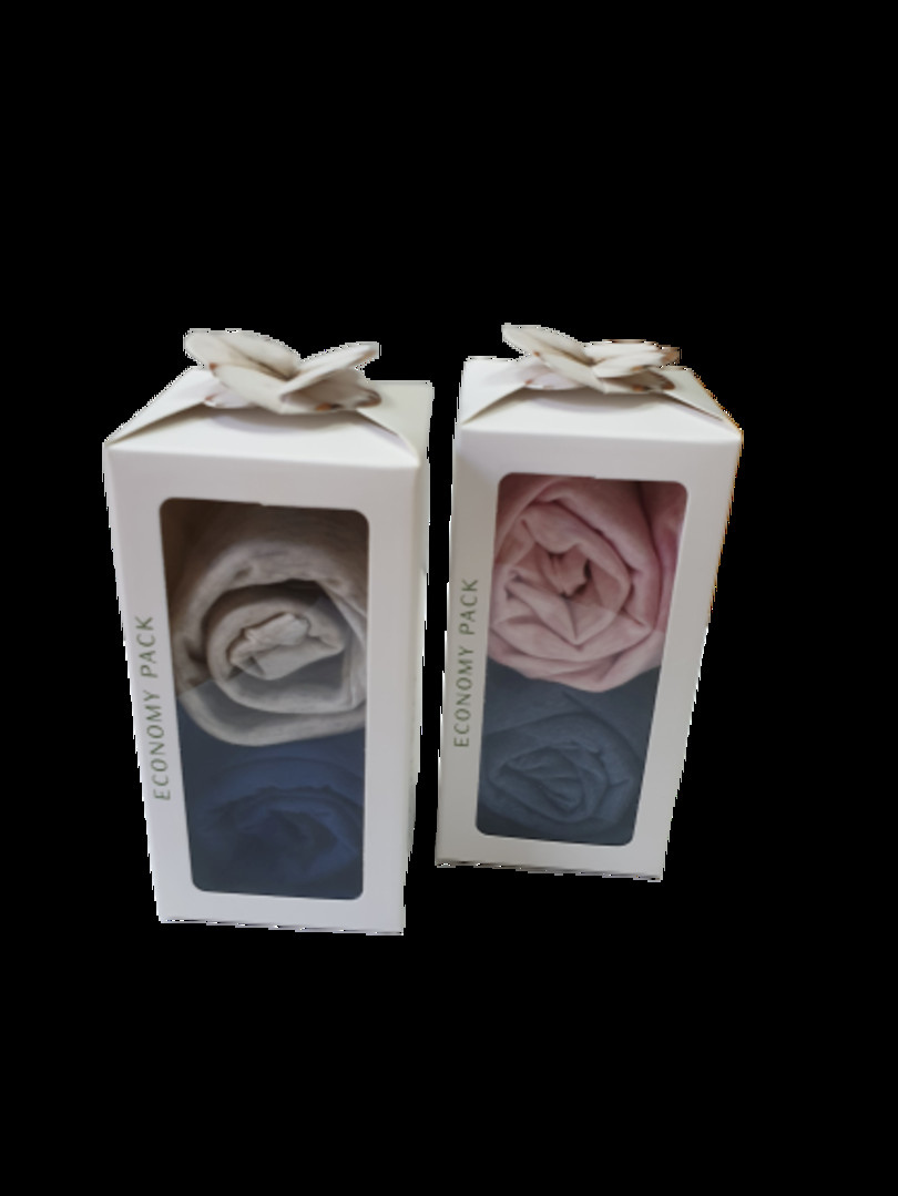 Kalhotky jsou baleny v krabičce po dvou kusech dvou různých barev.