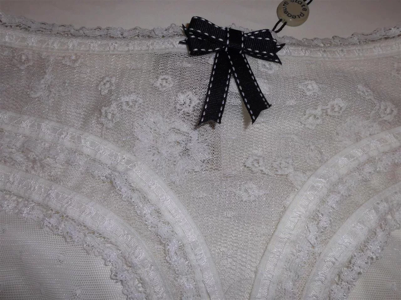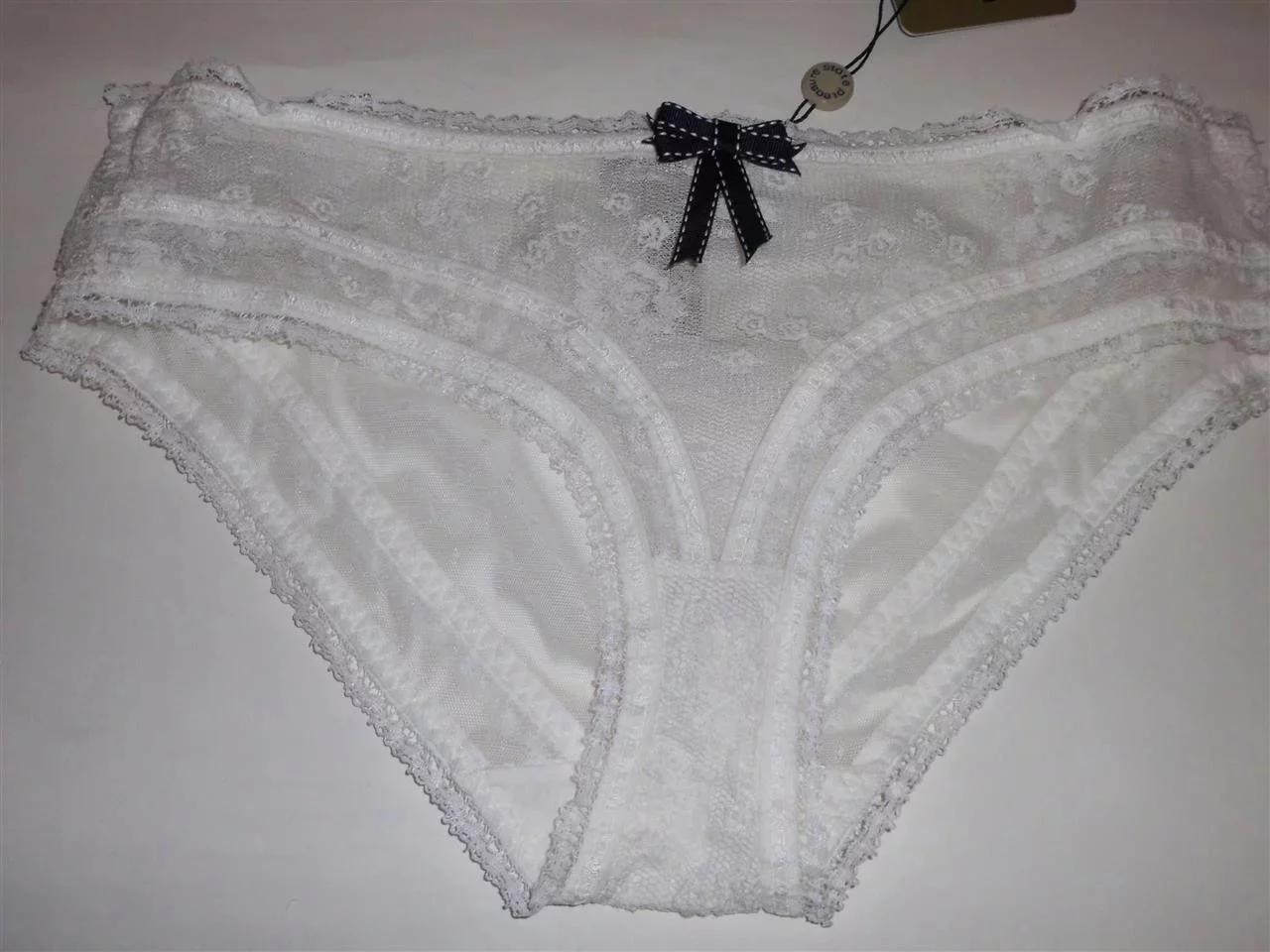 Luxusní kalhotky Pleasure State P31 - 3096V celokrajkové na předním díle zdobené saténovou mašličkou. Složení: 80% polyamid, 20% elastan.