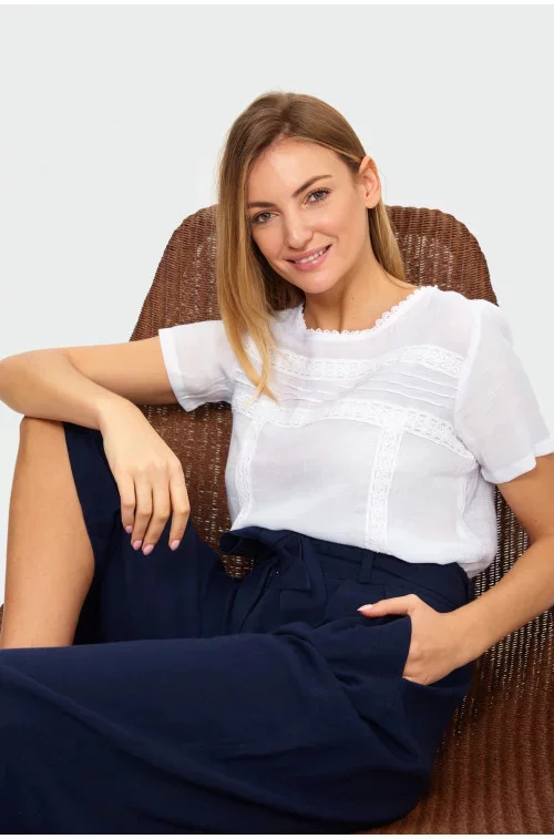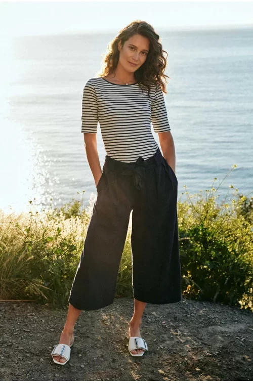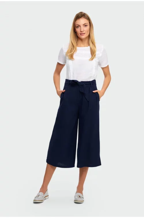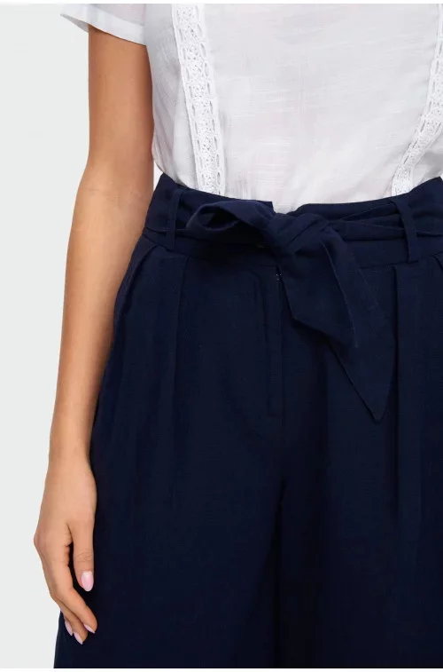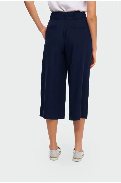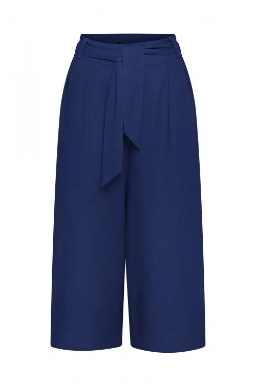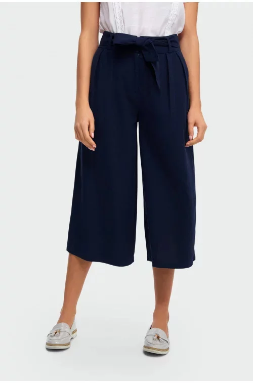Kalhoty culotte v délce do lýtek s páskem.