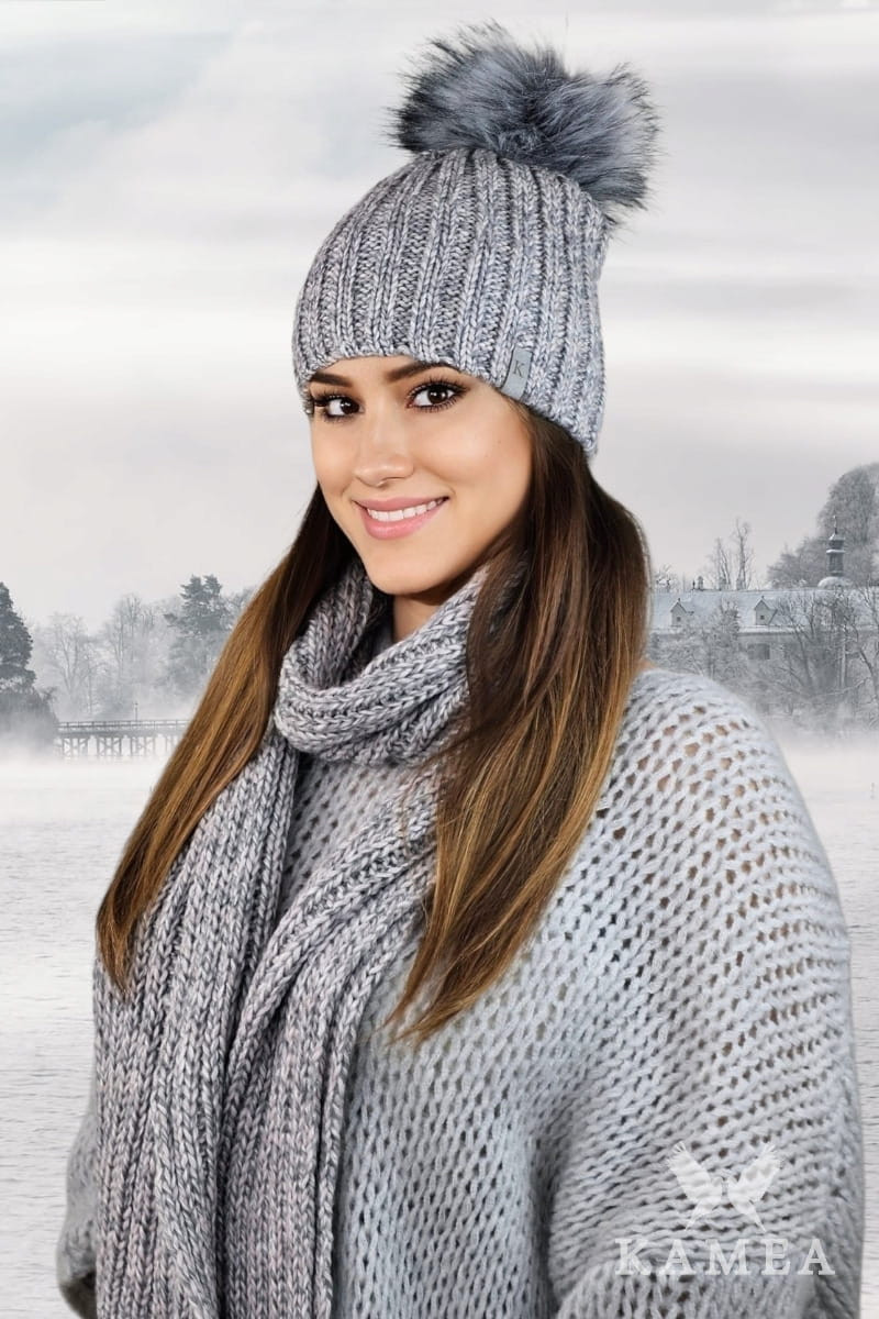 Komplet čepice a šála K.22.261.05 Světle šedý - Kamea