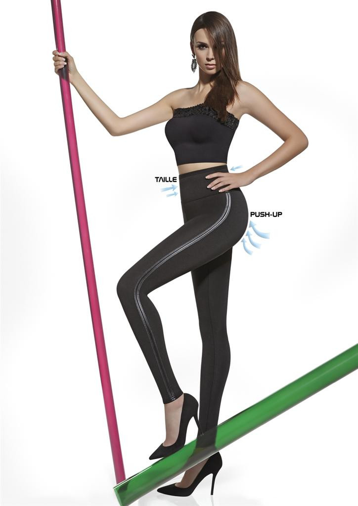 Stylové legíny s push-up efektem Angelica Bas Bleu jsou vyrobeny z příjemného elastického silnějšího materiálu. Na bocích nohavic jsou elegantní koženkové proužky. Bez kapes, délka je ke kotníkům.