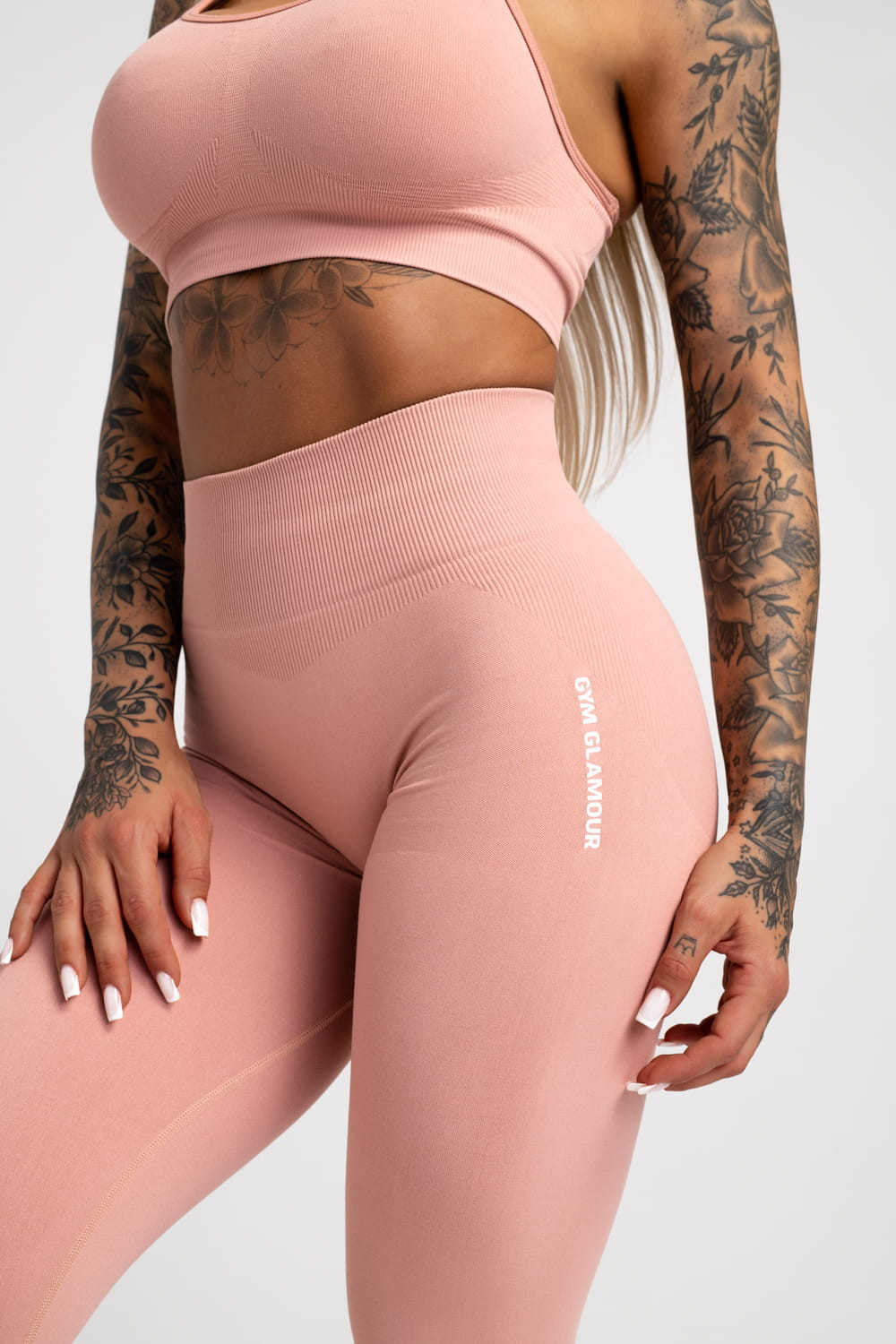 Kolekce 2022 Less Is More Bezešvé kompresní legíny. Legíny maskují nedokonalosti, skvěle se hodí pro každý typ postavy. Jak pro svalnaté ženy, tak pro ty, které necvičí. Materiál je silný, pružný a masitý. Jedná se o výrobek s nejsilnějším materiálem v naší nabídce. Hodně stahuje a tvaruje siluetu a zároveň netlačí a nezpůsobuje nepohodlí při intenzivním cvičení. Pás je pevný a stabilní. Dokonale drží břicho, zužuje pas a poskytuje pohodlí při cvičení. Nové logo - nápis Gym Glamour na boku, vyrobený z vylepšené fólie. Neprůhledné. Ani při náročném tréninku nejsou vidět stopy potu. nezůstavají na nich žádné pyly, vlasy apod. Ideální nejen na trénink, ale i na každodenní nošení. Skrytý, malý klín (vložka v rozkroku).