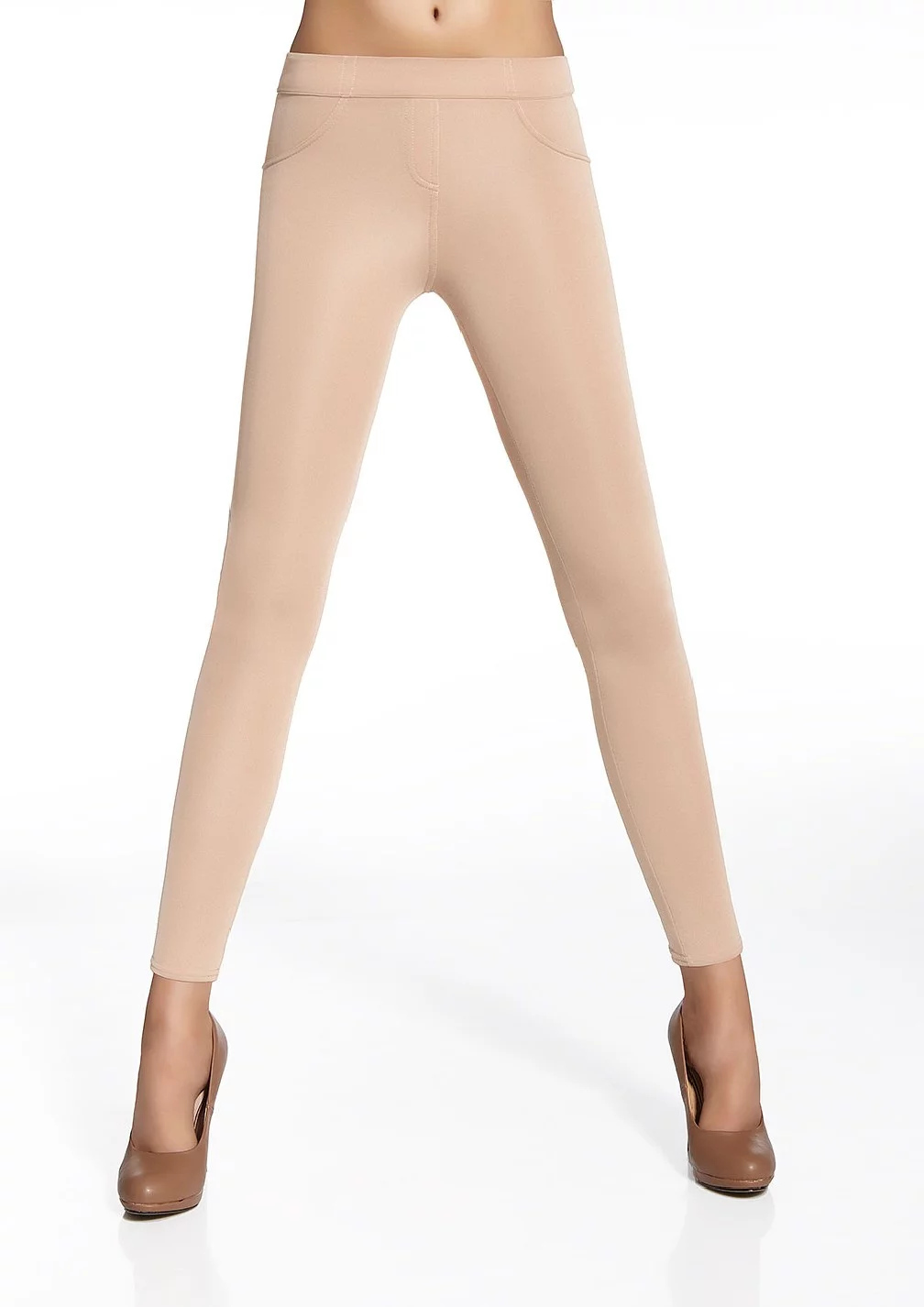 Luxusní dámské legíny Marika Bas Bleu s horní částí imitující kalhoty. S kapsičkami a s imitací rozparku. Dámské luxusní dlouhé legíny jsou vyrobené z příjemného elastického materiálu. Legíny jsou velmi pohodlné a perfektně modelují postavu. Legíny jsou mírně zateplené. 200DEN. Velikosti: S(2), M(3), L(4), XL(5), XXL(6). Materiálové složení: 85% Polyester, 15% Elastan.