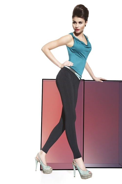 Působivé leginy Nancy Bas Bleu díky efektnímu prošití po celé délce nohavic opticky prodlužují nohy. Jsou vyrobeny z jemně lesklého elastického materiálu. Výrobek je skvělou volbou jak na každodenní nošení tak na slavnostnější příležitosti. V pase jsou leginy na gumu v šíři 4 cm. Zajímavým detailem, který model oživí jsou dvě imitace kapsiček na předním dílu. Na zadní části jsou dvě funkční kapsičky. Model imitující kalhoty je vhodný pro ženy i dívky, které chtějí zaujmout. Vhodným doplňkem jsou tuniky případně volná trika. 200 DEN. Materiálové složení: 85% Polyester, 15% Elastan. Barva: černá. Velikost: S, M, L.
