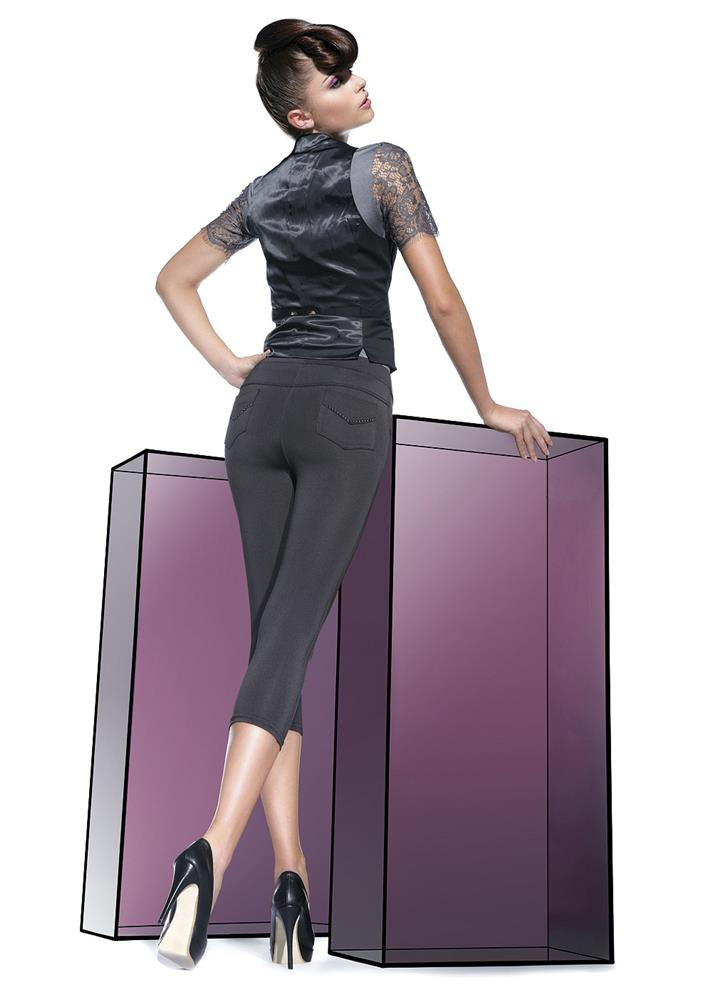 Jednoduché dámské 3/4 legíny Sandra short 200 DEN Bas Bleu zdobené černými zirkony na zadních kapsách. Model v klasickém střihu. Kapsy vzadu i vpředu podkreslí horní část, zakončenou gumou. Legíny dokonale imitují kalhoty a jsou vhodné i ke krátkým blůzkám. Materiálové složení: 85% Polyester, 15% Elastan. Barva: černá. Velikost: S,M,L.