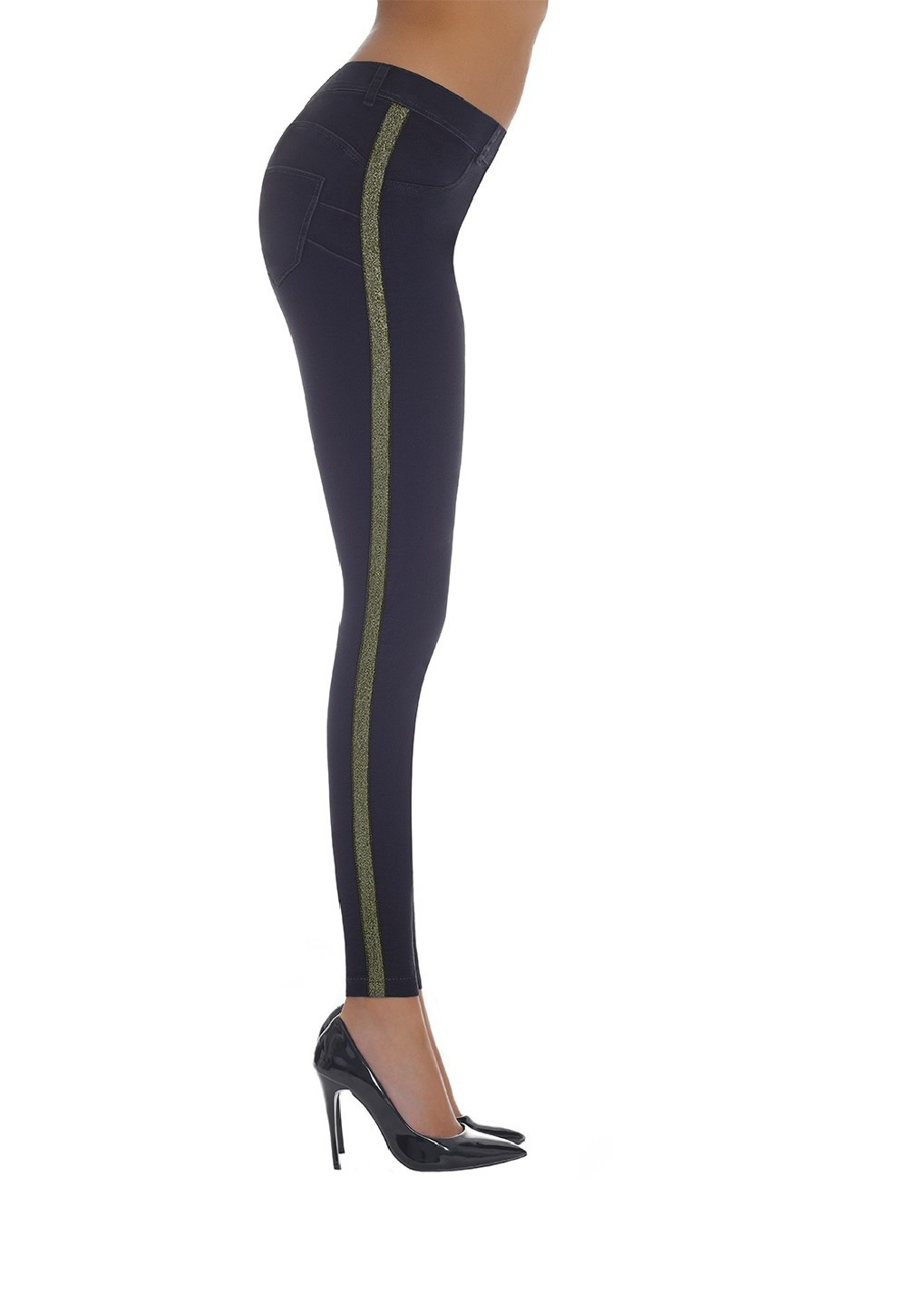 Legíny ve stylu denim, s proužkem. Materiál JEANS ručně broušený a strojově zbarvený je pružný, modelující postavu.
