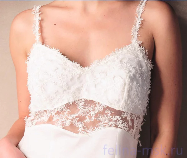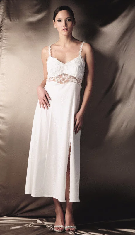 Nádherná dlouhá košilka Féraud. Luxusně zpracovaný prošívaný vrchní díl, průhledná krajka pod prsy. Košilka má rozparek lemovaný krajkou, špagetová regulovatelná ramínka.