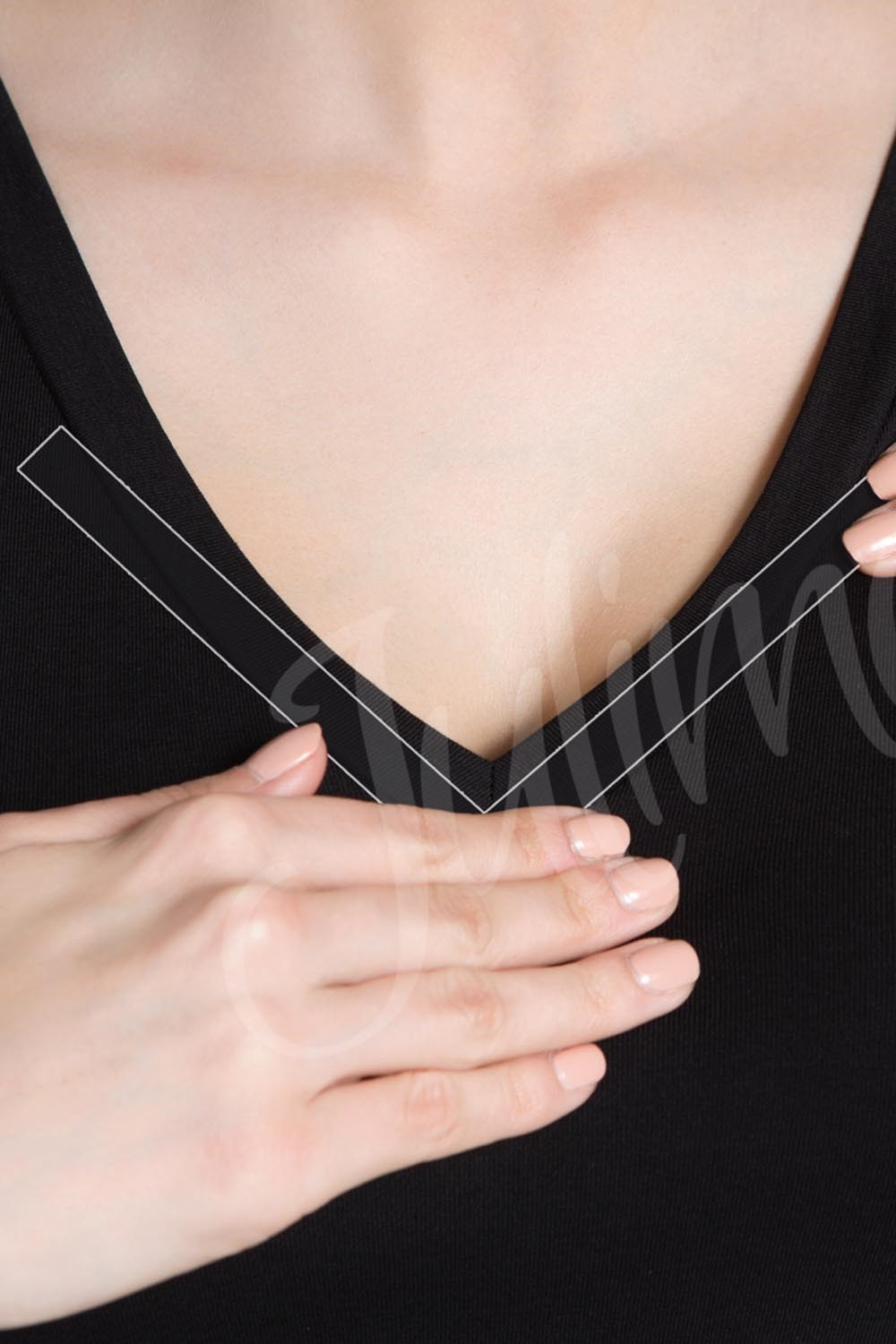 Oboustranná lepící páska na komfortní košilky a šaty s hlubokým výstřihem. Jednou částí se lepí na tělo,druhou stranou na vnitřní stranu oděvu. Slouží k tomu, aby výstřih držel tvar a nebylo vidět to, co dáma nechce, aby vidět bylo. Páska je neviditelná pro oko a bezpečná pro pokožku, protože je vyrobená ze 100% hypoalergenního materiálu.