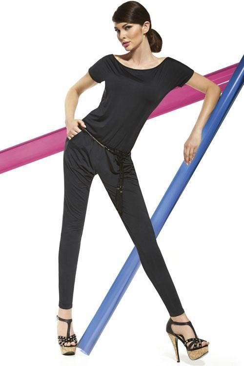 Elegantní overal Paula Bas Bleu s krátkým rukávem, vyrobená z elastického materiálu. Gumička kolem pasu zvýrazňuje křivky. Nohavice zužené ke spodní části, zakončené malou manžetou. Horní část hladká, s lodičkovým výstřihem. 200 DEN. Materiálové složení: 85% Polyester, 15% Elastan. Barva: černá. Velikost: S, M, L.