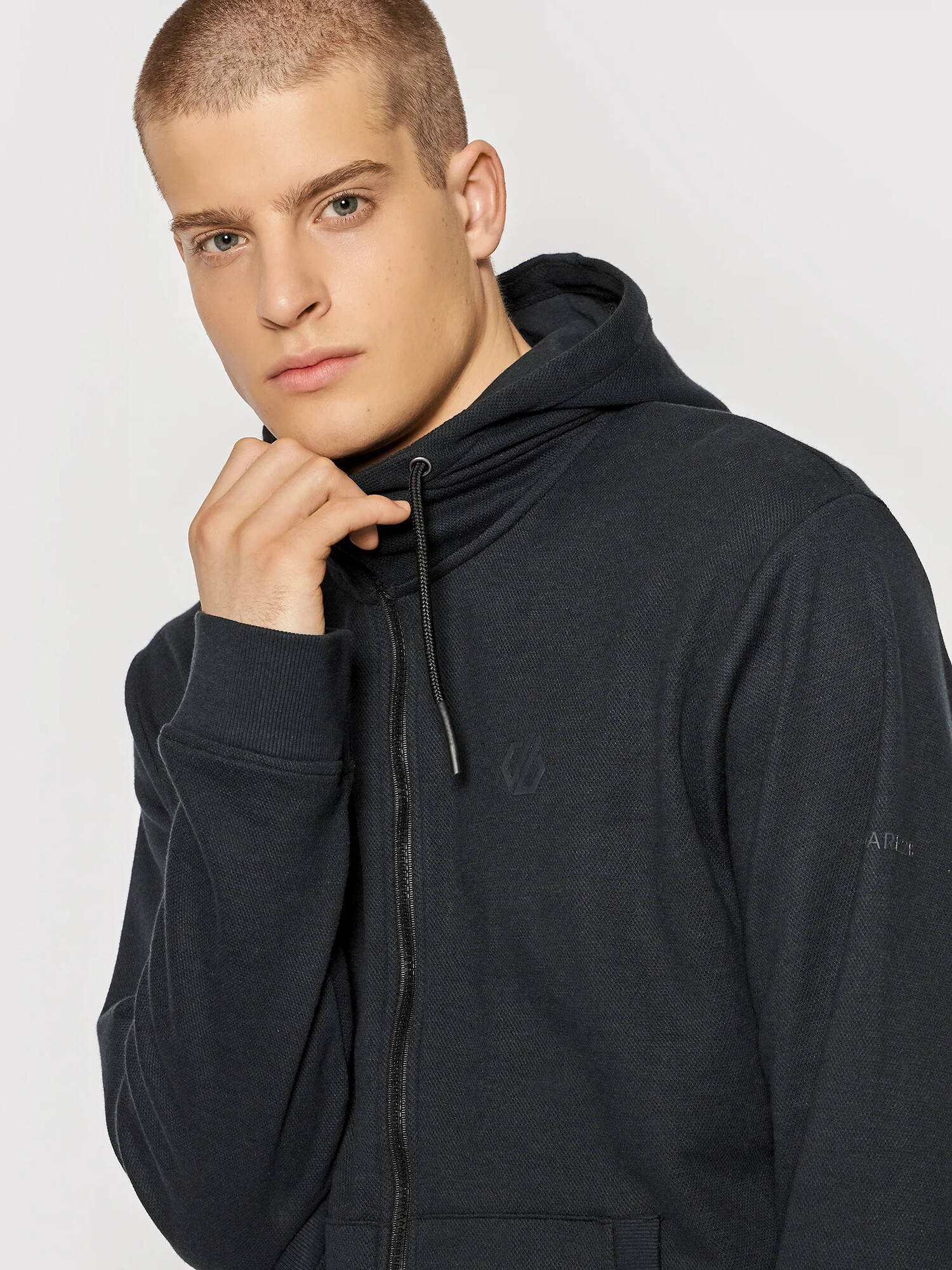 Pánská mikina, která vám poskytne maximální komfort při sportovních i volnočasových aktivitách. Je vyrobena z bavlněné žerzejové látky, která je měkká, prodyšná a také velmi příjemná. Mikina má kapuci s nastavovacími šňůrkami, 2 boční kapsy na ruce a žebrované manžety i lem.