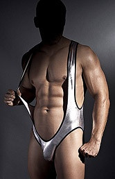 Erotické pánské body Fabian značky ANAIS je vyrobeno tak, aby odhalovalo vypracované pánské tělo. Body je v lesklém odstínu stříbrné barvy.