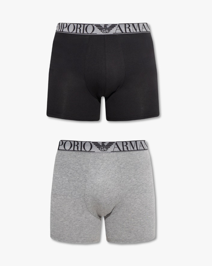 Produkt Pánské boxerky 2 pack 111912 2F720 08649 šedá/černá - Emporio Armani prodáváme v těchto velikostech: XLa barvách šedá-černá
