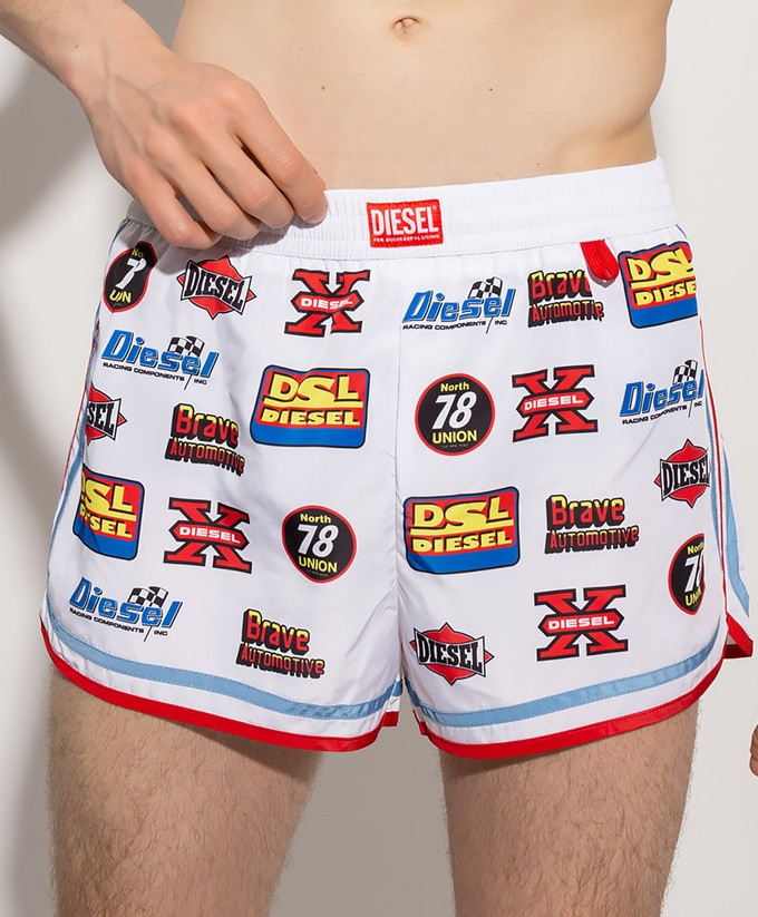 Pánské koupací kraťasy - 00S0L6-0NDAC-100 - bílá/potisk - Diesel