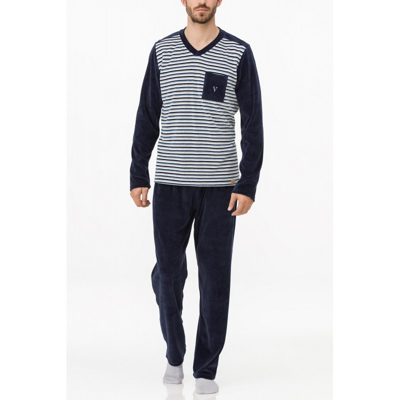 Produkt Pánské pyžamo 11737 - Vamp prodáváme v těchto velikostech: Ma barvách tm.modrá s proužky