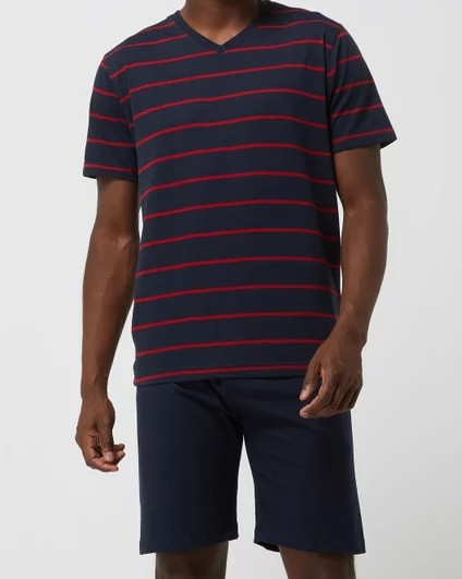 Produkt Pánské pyžamo krátké - 56098 4065 - tm.modrá/červená - Bugatti prodáváme v těchto velikostech: 52a barvách tm.modrá s červeným proužkem