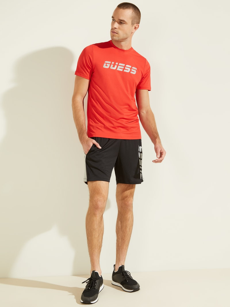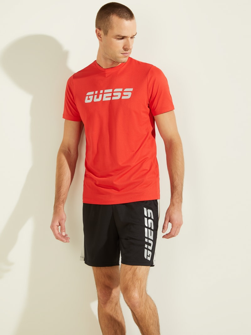 Tričko z elastické syntetické tkaniny a antimikrobiálního materiálu. Reflexní logo značky Guess.